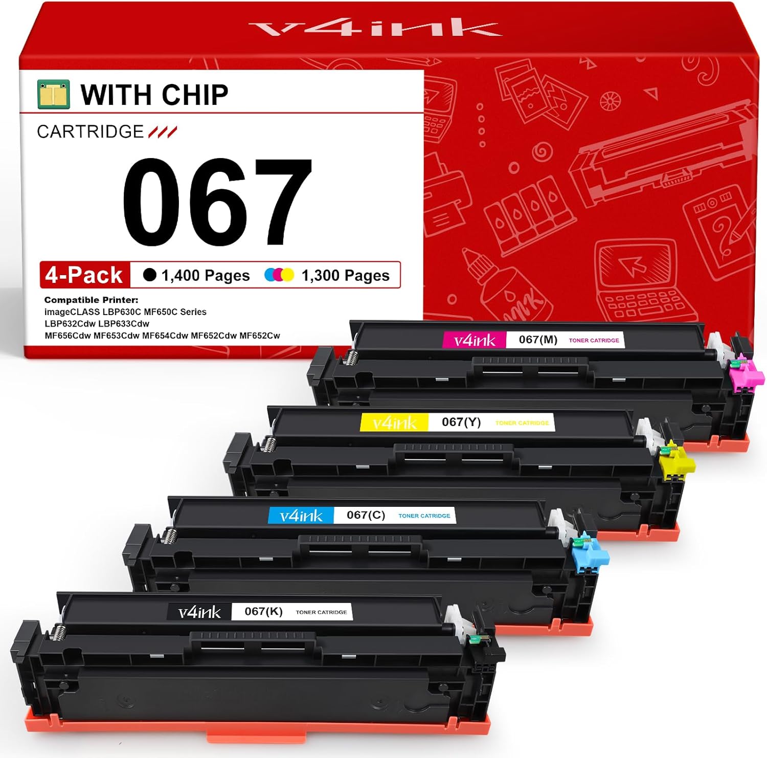 High Performance: Our 067 toner cartridges use Chemical Toner to deliver superior printing results with vibrant colors and sharp prints. v4ink undergoes a series of rigorous quality testing procedures to ensure print quality and compatibility with your printer.
