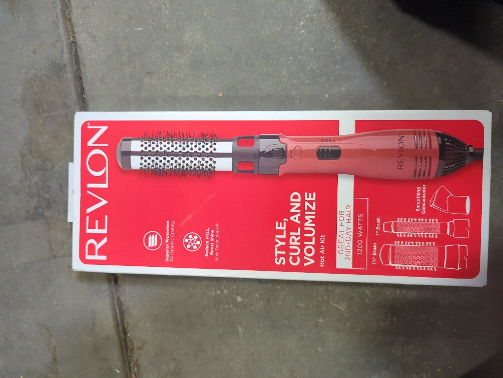 The Revlon RV440CN5 1 in. and 1-1/2 in. 1200-Watt Shine Enhancing Hot Air Kit uses ionic technology for faster drying with shinier healthier-looking results. Negative ions saturate the airflow, reducing the size of water droplets, infusing hair with moisture healthier-looking styles. This dryer features three heat and speed settings.. 1 & 1 1/2 Thermal Brush Attachment. On/Off Switch with Indicator Light. Tangle-Free Swivel Cord. Concentrator Attachment
