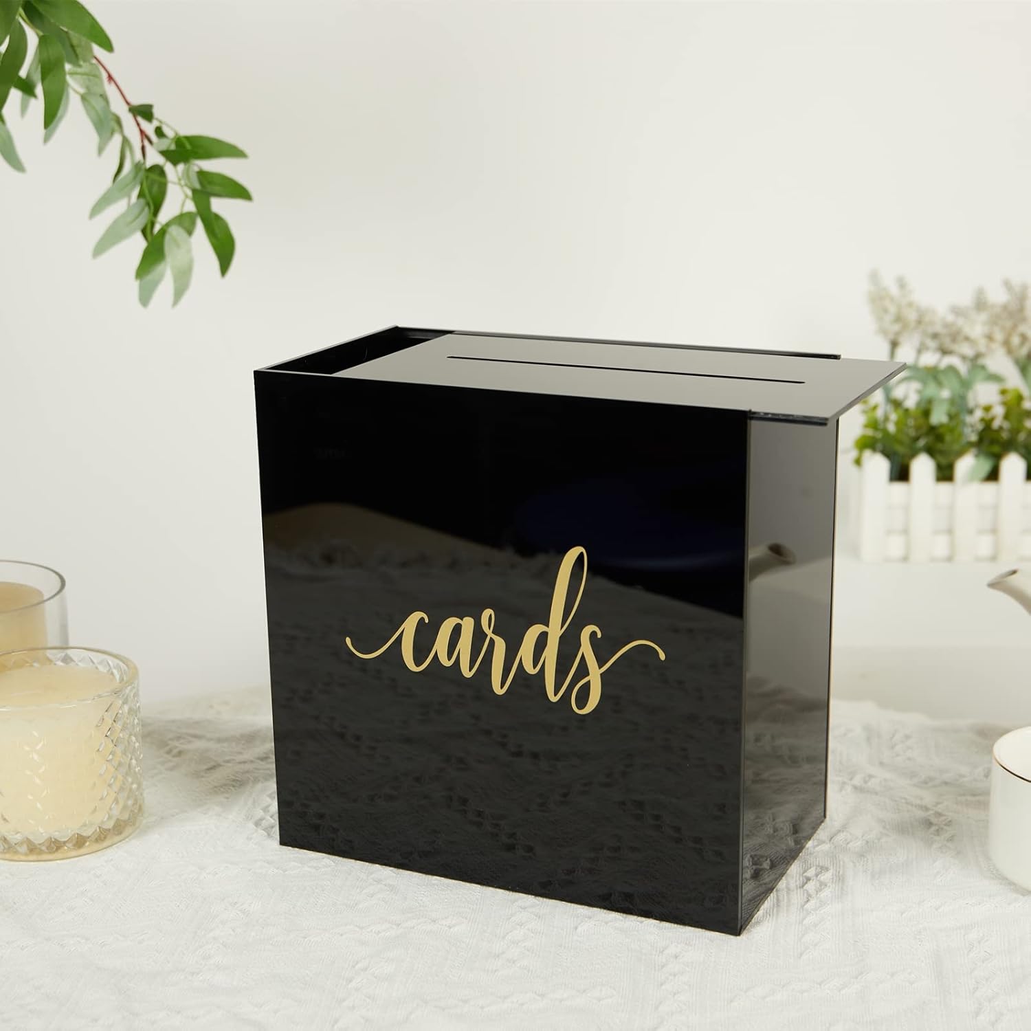 10” Acrylic Card Box - Wedding Card Box for Reception, Birthday, Party, Money Box, Wishing Well, Graduation Party, Elegant Large Clear Card Box-ACB001-Black