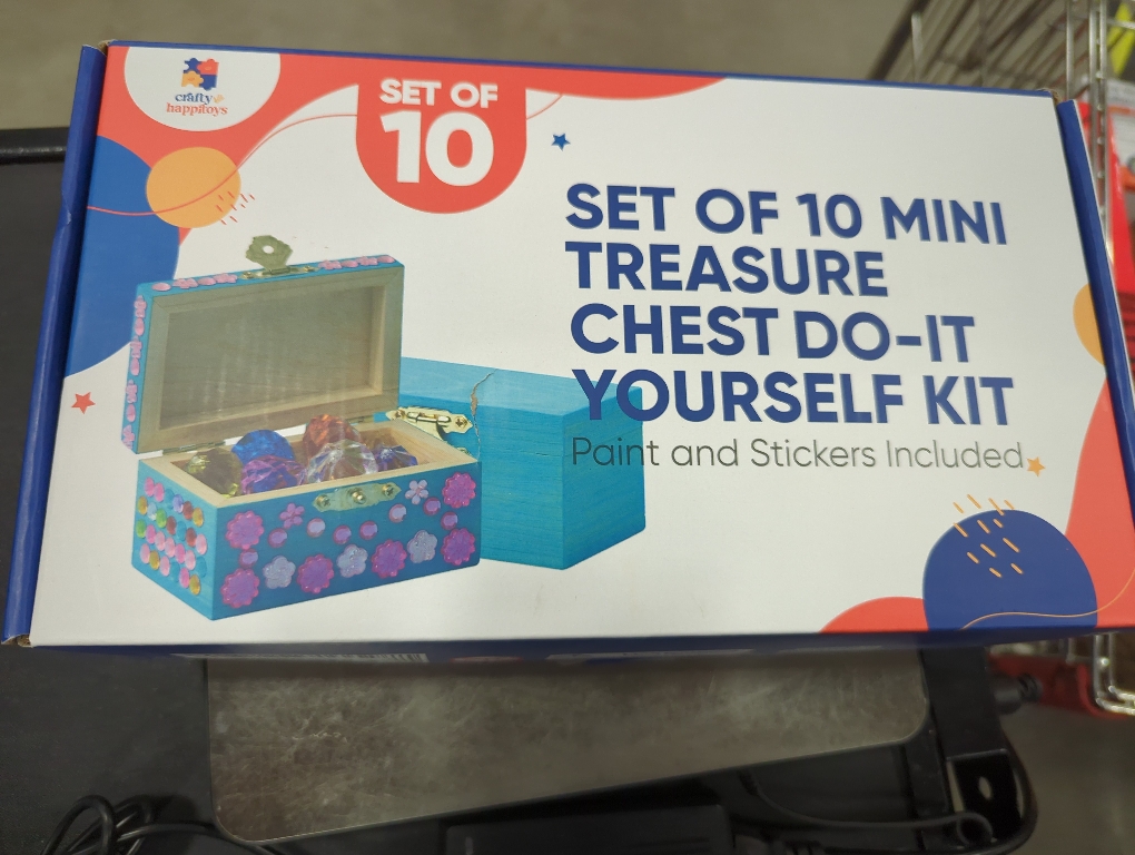 Value Set Art Party Favors - This bulk party favors for kids contains everything. It includes 10 mini treasure chest. Each small treasure chest gift pack includes 1 unfinished wood box, 5 Pastel Colors Paint-strip with brush & 2 sheets of stickers