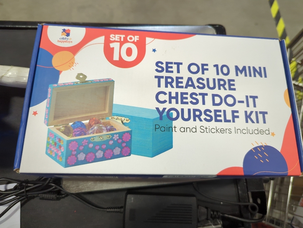Value Set Art Party Favors - This bulk party favors for kids contains everything. It includes 10 mini treasure chest. Each small treasure chest gift pack includes 1 unfinished wood box, 5 Pastel Colors Paint-strip with brush & 2 sheets of stickers