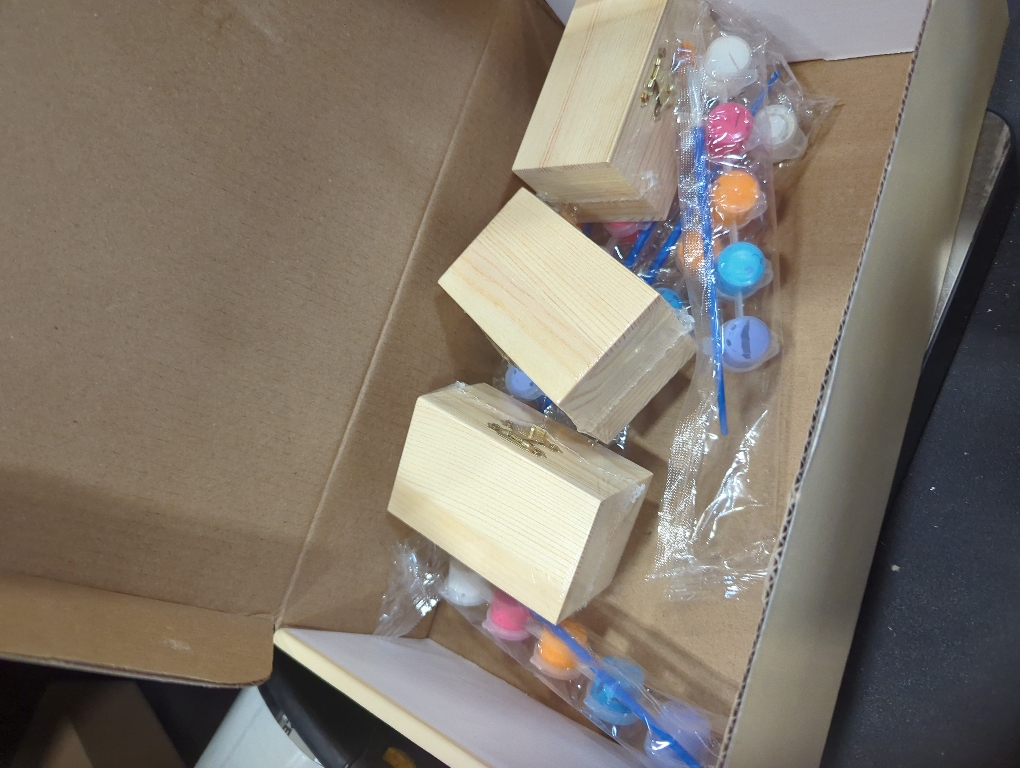 Value Set Art Party Favors - This bulk party favors for kids contains everything. It includes 10 mini treasure chest. Each small treasure chest gift pack includes 1 unfinished wood box, 5 Pastel Colors Paint-strip with brush & 2 sheets of stickers