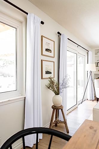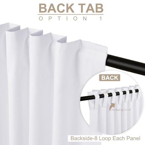 100% Blackout Shield Linen Blackout Curtains for Bedroom 108 Inches Long, Back Tab/Rod Pocket Living Room Drapes, Thermal Insulated Blackout Curtains 2 Panels Set, 50" W x 108" L, Bright White