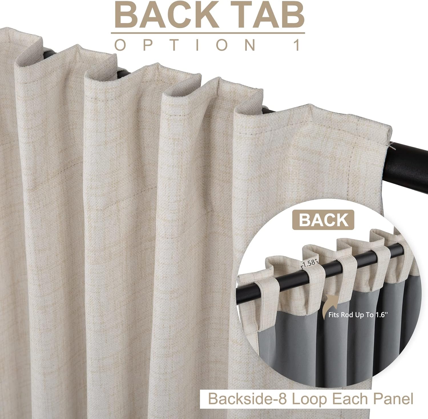 100% Blackout Shield Linen Blackout Curtains for Bedroom 108 Inches Long, Back Tab/Rod Pocket Living Room Drapes, Thermal Insulated Blackout Curtains 2 Panels Set, 50" W x 108" L,Cream