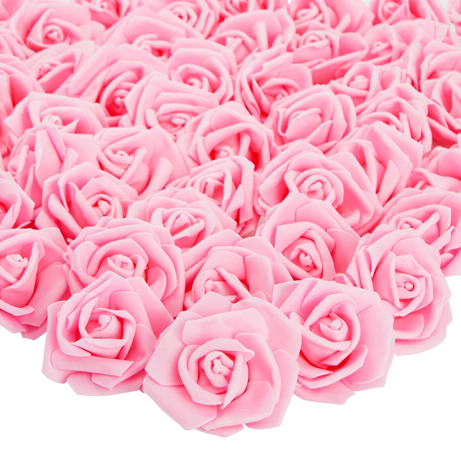 Elevate your home and party decor with this 100-pack of beautiful stemless artificial pink roses. Use the flower heads for crafts, to create Valentines decorations, spring decor, photo booth props, backdrops, or floral garlands for baby showers, weddings, and birthday parties. The artificial stemless roses for decorations are made from polyethylene foam (PE Foam) that will not wilt and requires little maintenance to clean, wipe them with a clean damp cloth, store them and use them for multiple events. Each one of the pink artificial roses measures up to 3.0 inches in diameter and up to 1.3 inches tall, perfect for scattering around dessert tables and countertops.