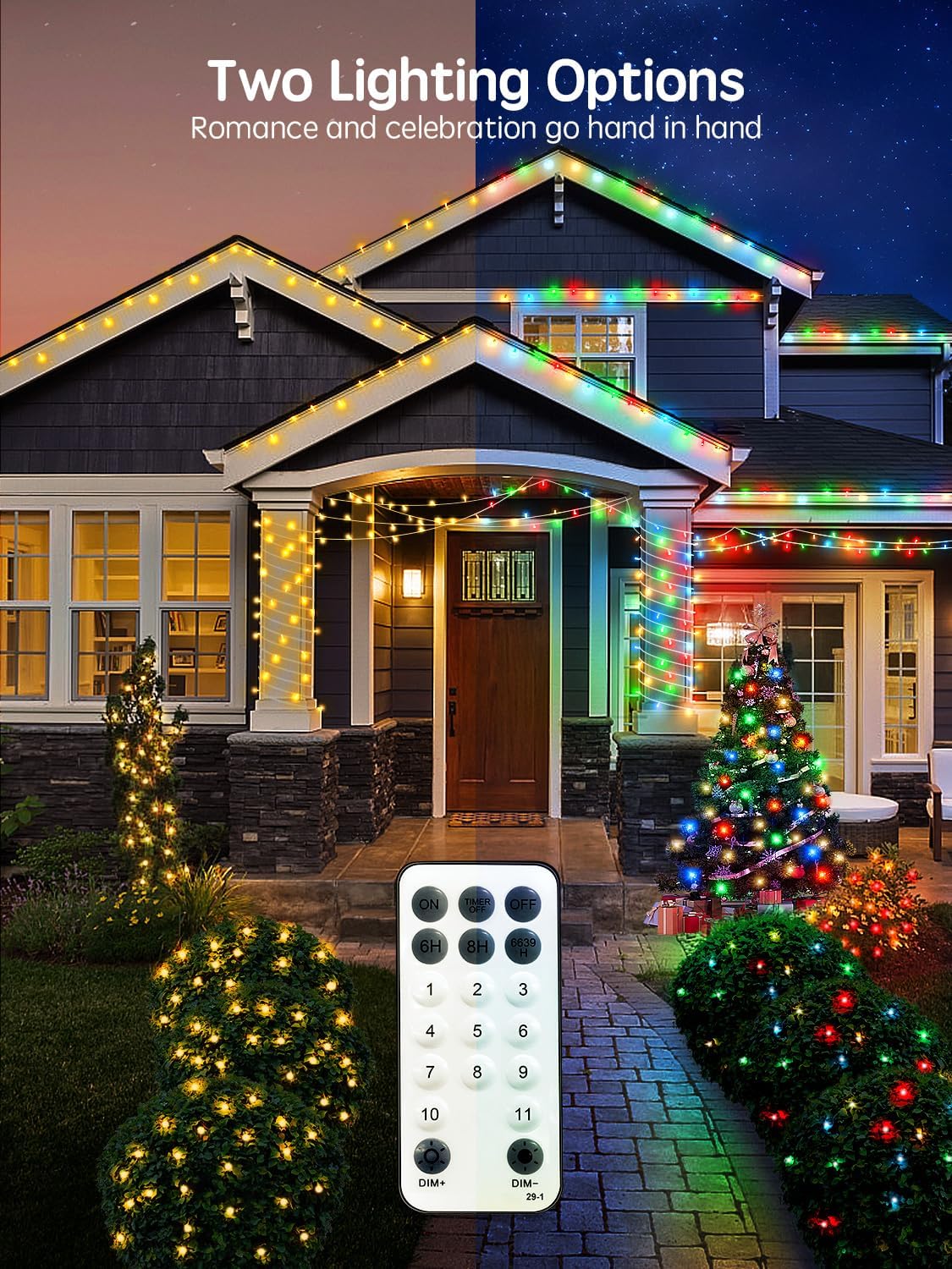 【Brightest on the Block · Extendable to 300FT】300 LED Christmas string lights (100FT) can link up to 3 sets — perfect for your yard, roofline, and Christmas tree.