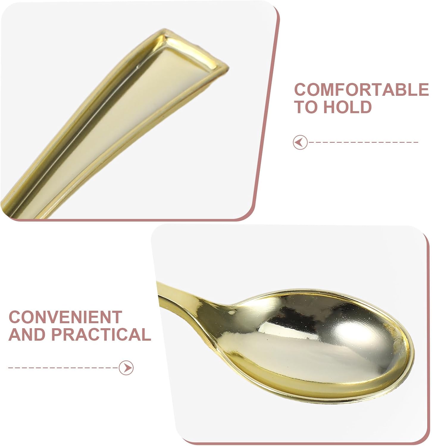 Premium tasting experience: featuring precise plastic taste testing spoons with luxurious electroplated detail, each sampling spoon adds elegance to wedding cake and dessert parties
