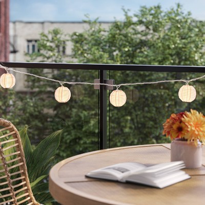 Bring a touch of magic to your decor with these 10-Count LED Mini Indoor Outdoor Lantern String Lights from Threshold™. Featuring a white plastic cord strung with ten clear bulbs within textured stripe globular shades, these mini string lights will brighten up the inside or outside of your house with a breezy look. Drape them in your living or dining room or hang them along the edges of your patio or deck to create a warm and welcoming ambiance.Threshold™: Looks like home, feels like you.