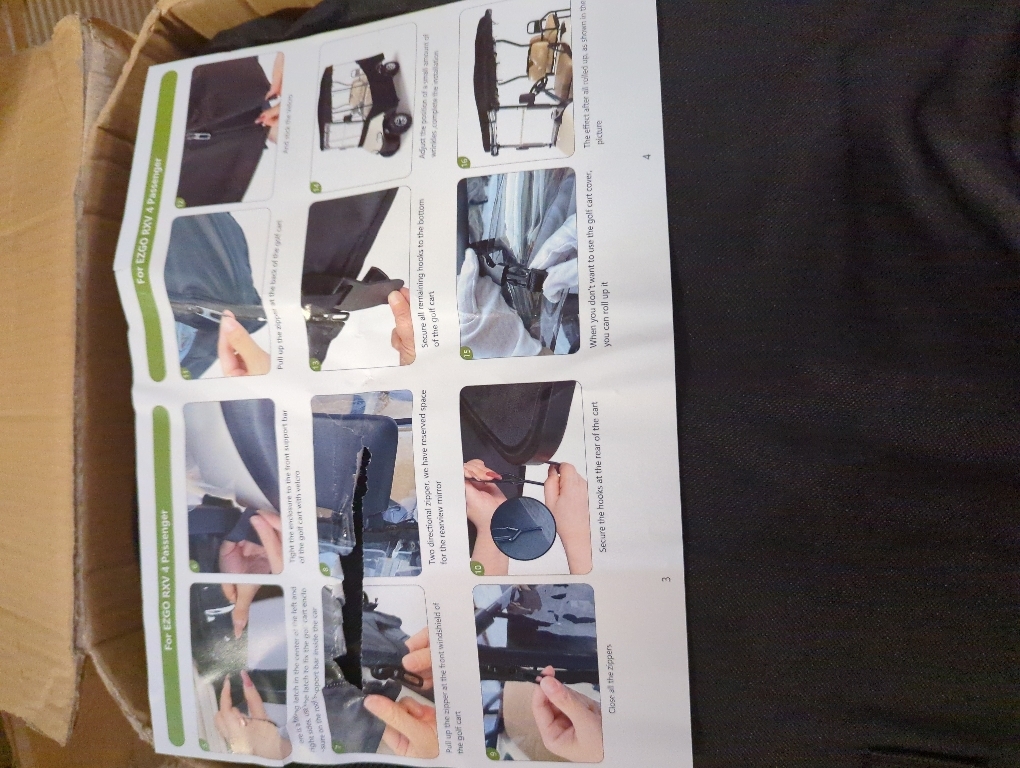 ⛳ROLL-UP WINDSHIELD/ DOORS/ REAR PANEL: 1.The windshield has a zipper so you can unzip and roll up by magic; 2.The doors can be zippered both inside and outside. every door side has 3 magic tapes to secure it when rolled up; 3.The rear panel is easily zipped off to access to your golf clubs.