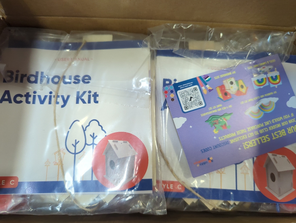 Great Value - The birdhouse bulk kit contains all you need to build & decorate the wooden bird houses. It includes 12 sets of individually wrapped birdhouses; each with a paintbrush, 6 colour paint-strip and easy instructions.