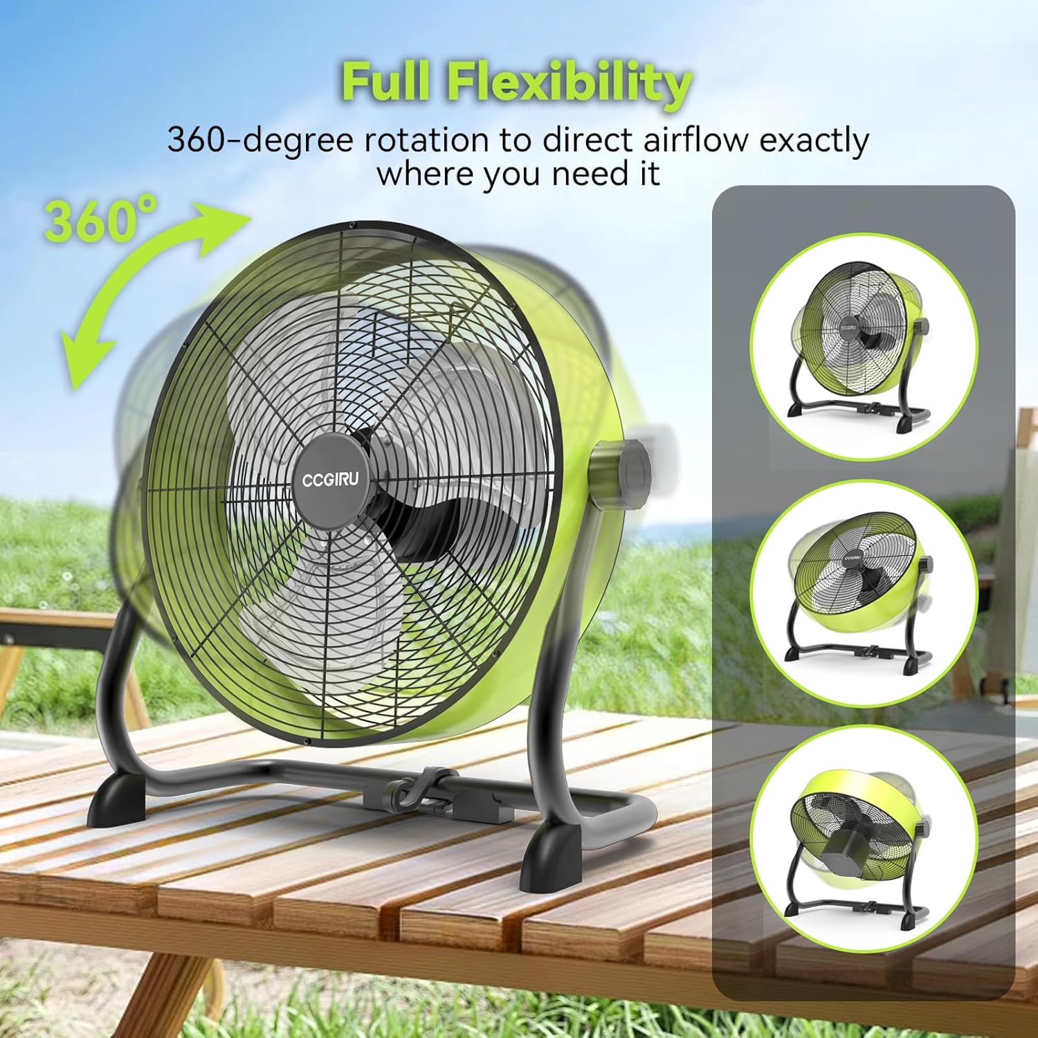 【12000mAh Battery Capacity】CCGIRU 12 inch rechargeable fan has a built-in large-capacity lithium-ion battery of 12000mAh. It gets fully charged within only 4 hours. This portable fan can also charge digital devices such as mobile phones through a USB out port.