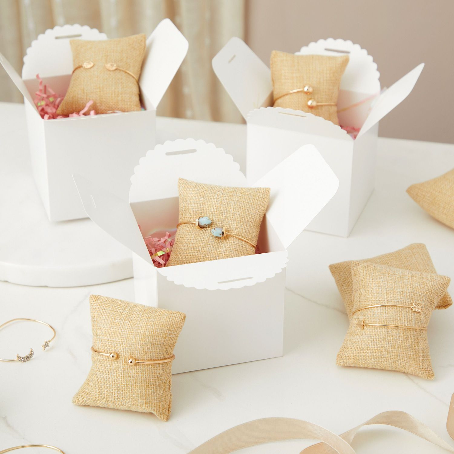 • Bracelet Pillows for Jewelry Display: Show off your gorgeous jewelry like a true fashionista with these beige linen bracelet pillows that are perfect for displaying watches, bangles, and other bling