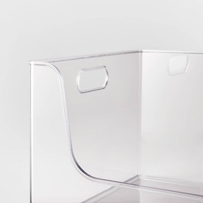 Streamline and organize home office desktops, shelves and closets with the All Purpose Open-Front Storage Bin from Brightroom™. The 12 x 12 x 8 design provides plenty of space to store office and crafting supplies and more in one convenient place. The clear plastic construction lends a clean, modern look, and the front panel dips down so you can access what you need easily. Plus, it’s easy to see what's stored inside. This all-purpose storage tray is convenient and useful for keeping clutter under control, and its uses are endless.