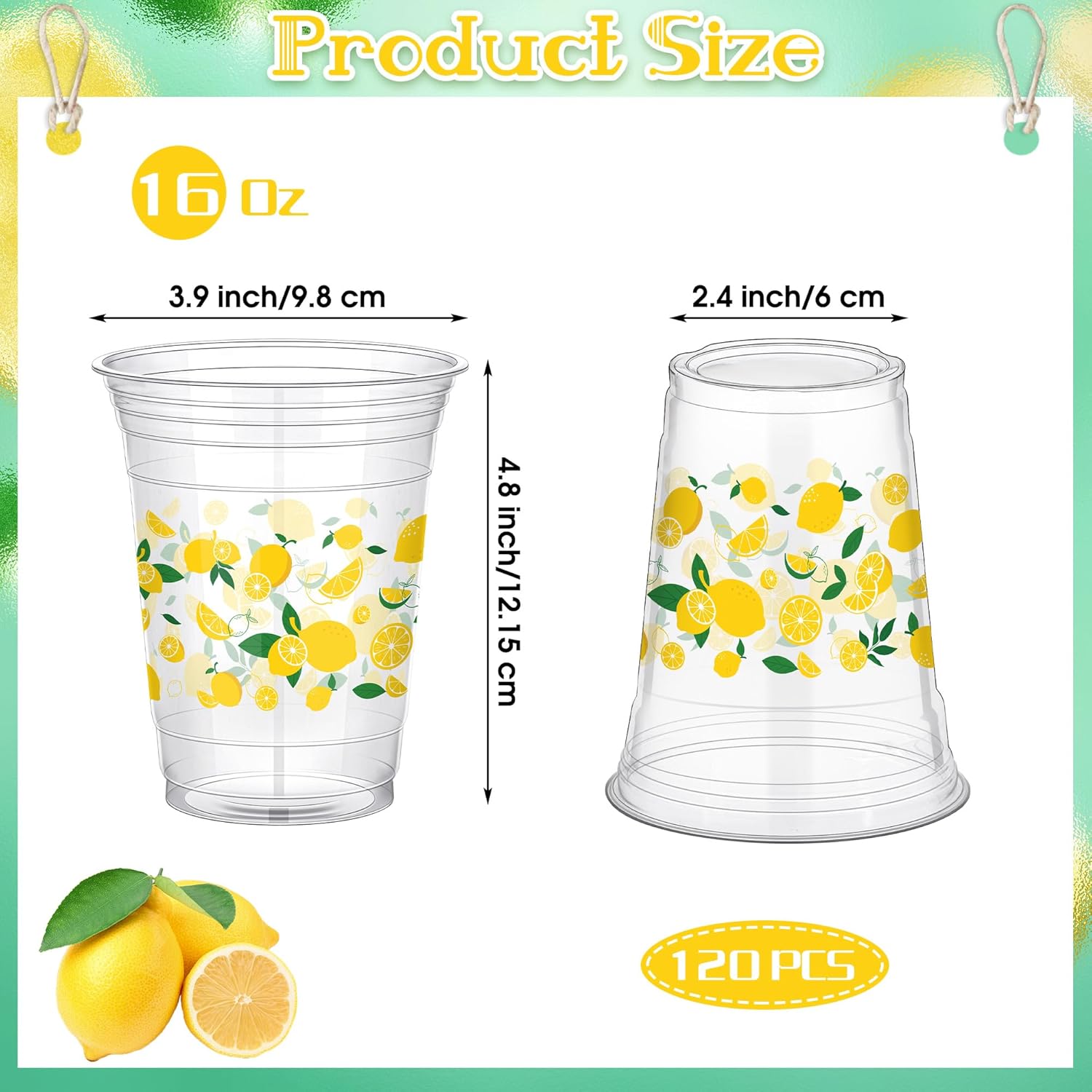 120 Pieces Lemon Theme Disposable Plastic Cups Bulk 16 Ounces Clear Lemon Theme Party Cups Drinking Printed Cup for Themed Holiday Party Supplies Favors