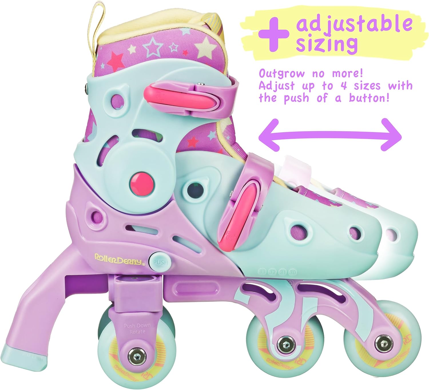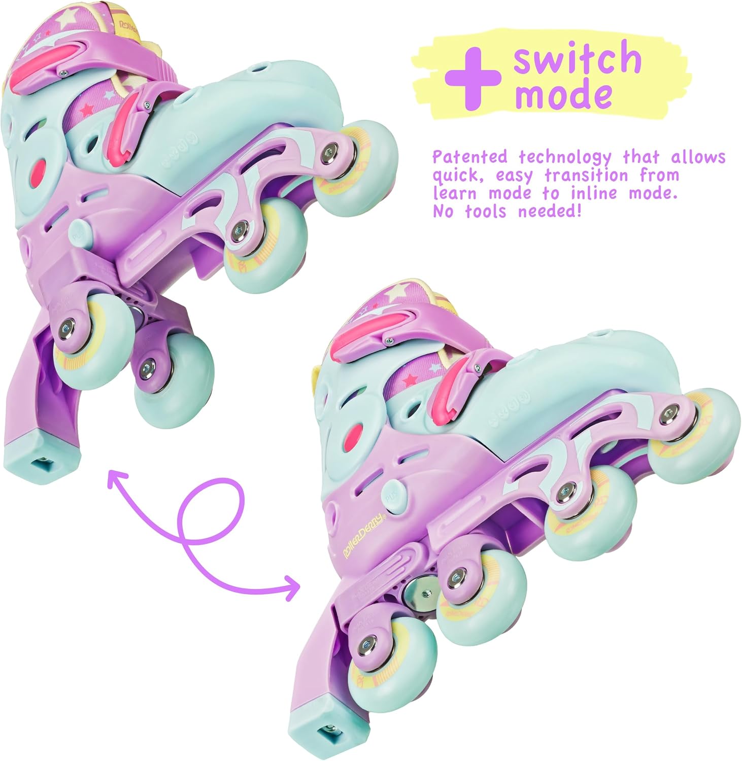 13-3...Roller Derby Switch Skates for Beginners, 2 in 1 Adjustable Skates Convert from Learn Mode to Inline Skates for Toddlers, Kids