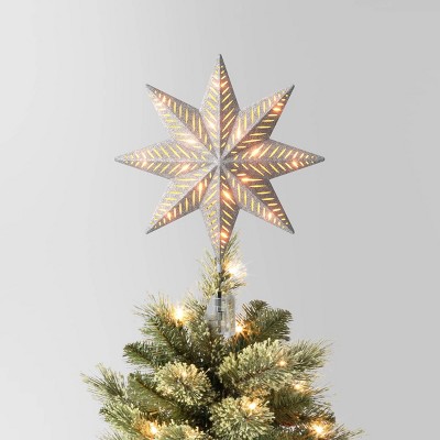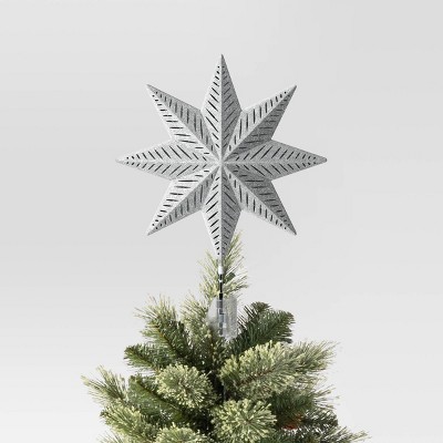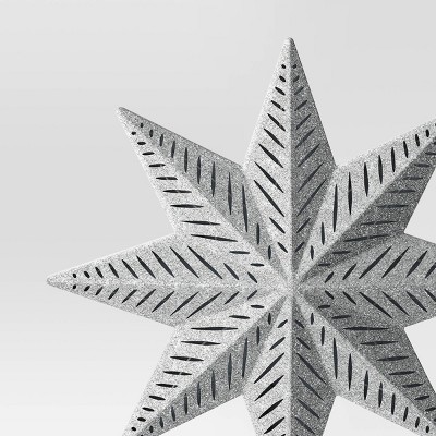 13.5" Pre-lit Glittered 8-Point Star Christmas Tree Topper Silver with Clear Incandescent Lights - Wondershop™