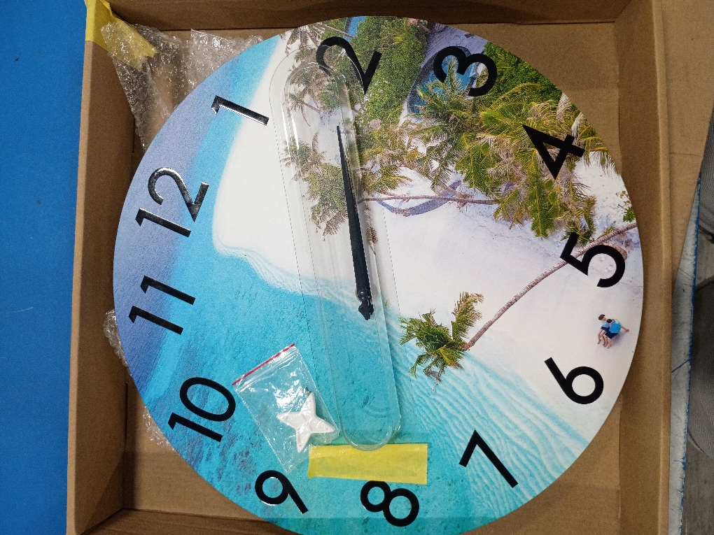 2.Coastal Beach Theme -- Modern wall clock features an tropical coastal beach themed with summer palm coconut tree blue ocean image. Especially suitable for house decoration in summer, giving a clear and cool atmosphere. Also, this summer theme is suitable for outdoor festivals, summer parties, outdoor BBQ and more.