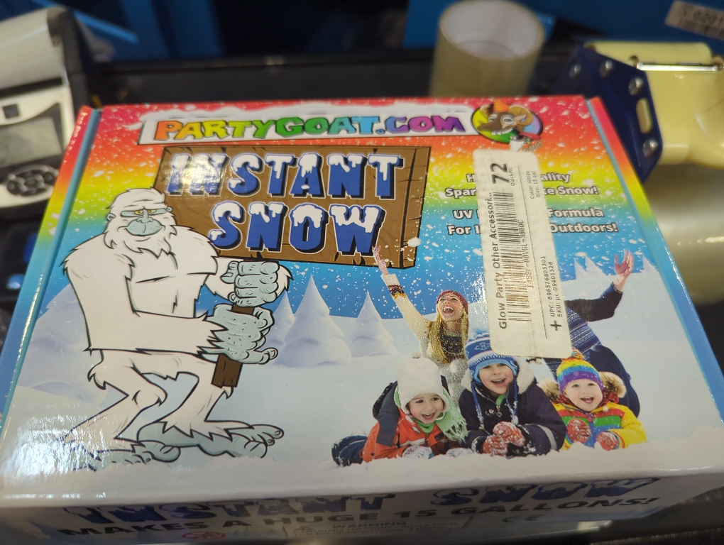 ❄️ UV RESISTANT FORMULA! Our new and improved fake snow formula is now suitable for indoor or outdoor use. Unlike other instant snow that turns into sticky goo outdoors, our specially treated formula lasts for days in the sun. To maintain its appearance, simply protect it from rain. Capture amazing snow photography outside or inside with this big snow packet! Enough snow to fill a 24sq ft snow pit 1 inch deep!