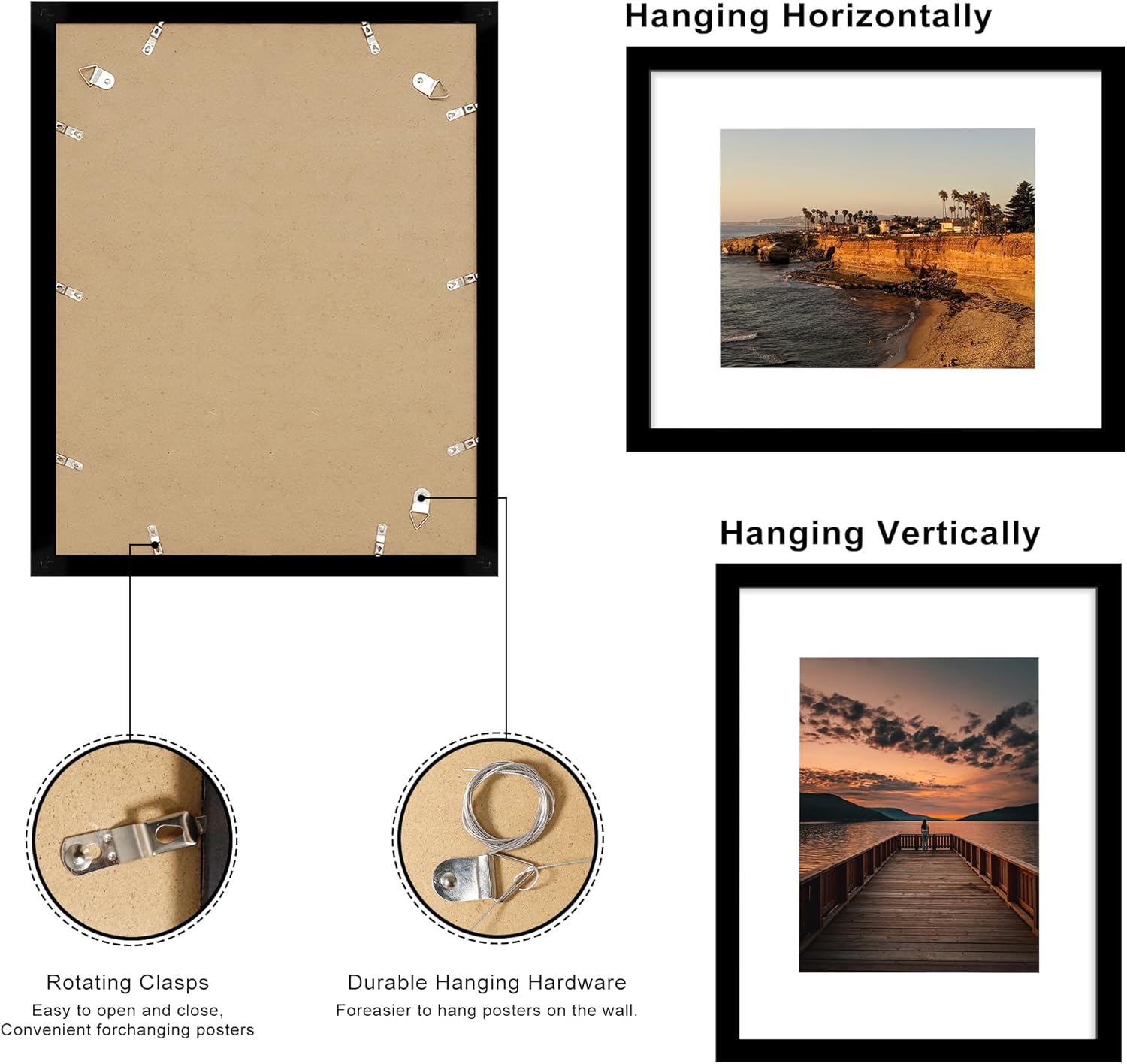 Quality Material & Real Glass CCDCC 16x20 poster frame is made of strong MDF wood and high-quality tempered glass. Tempered glass eliminates the inconvenience of bending, reflection, fragility and easy scratching. Perfectly protect and clearly display your favorite pictures and Artworks Display Size Our 16 x 20 picture frame fits a 11x14 photo with mat, if you remove the mat, it can fit a 16x20 photo. Giving you the flexibility to display your photos the way you want Wall Art Decor Our 16x20 poster frame is perfect for displaying any of poster, photos, Pictures, Puzzles, Kids Drawings and All other Artworks in your office, home, living room, art gallery, college, corridor. Two frames allow you more freedom to display different styles of decoration Easy to Use 16 20 poster frame is equipped with flexible 360 Rotating Buckles and changepictures quickly. The metal hooks on the back panel can be used for wall display horizontally and vertically Well-Packaged Our 16 by 20 poster frame 2 pack is securely shrink-wrapped and reinforced with corner protectors to avoid any possible damage. Moreover, we utilize special customized corrugated boxes to package all our frames, ensuring they arrive in pristine condition