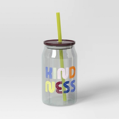 Spread kindness while sipping on your favorite beverage with the 17-Ounce Glass Kindness Straw Tumbler from Room Essentials™. This see-through tumbler features the word "kindness" in multicolor for a lovely look. Made from borosilicate glass, this brown-lidded tumbler is suitable for cold beverages, and it should be hand washed for easy cleanup. Room Essentials™: Everyday Value
