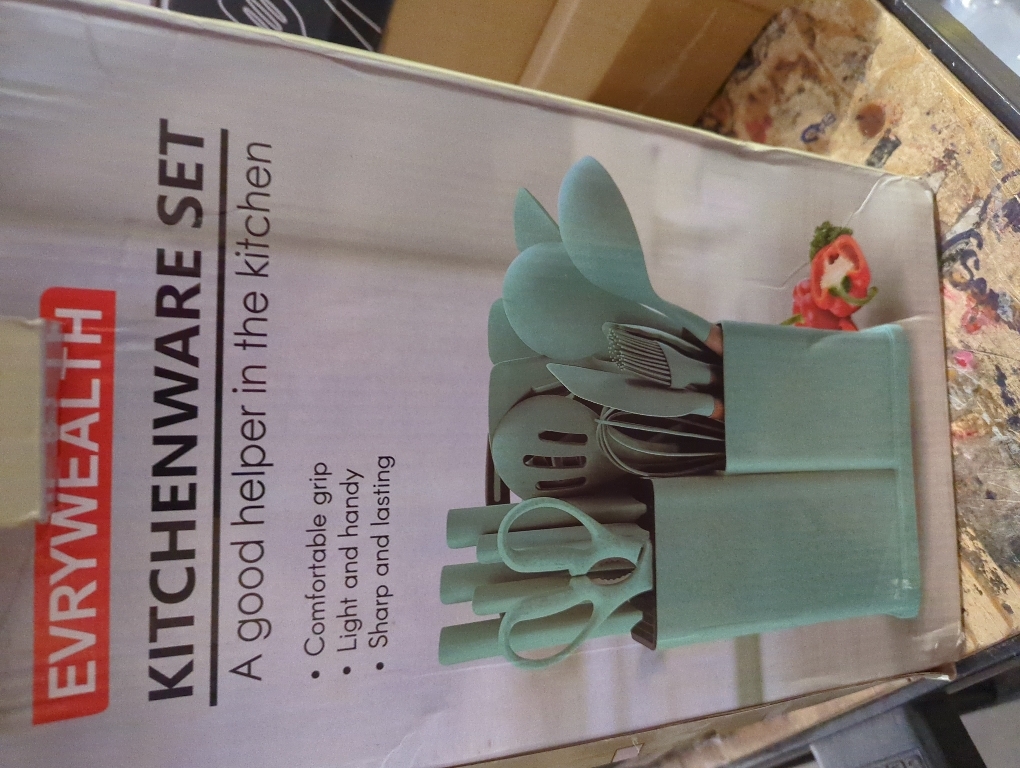 COMPLETE KITCHEN UTENSILS SET -The 19-piece kitchen tools includes everything you need: knife set and silicone cooking utensils , tongs, scissors, cutting board, and more. Perfect for cooking, baking, and serving, this kitchen utensils set is ideal for both beginners and professional chefs.