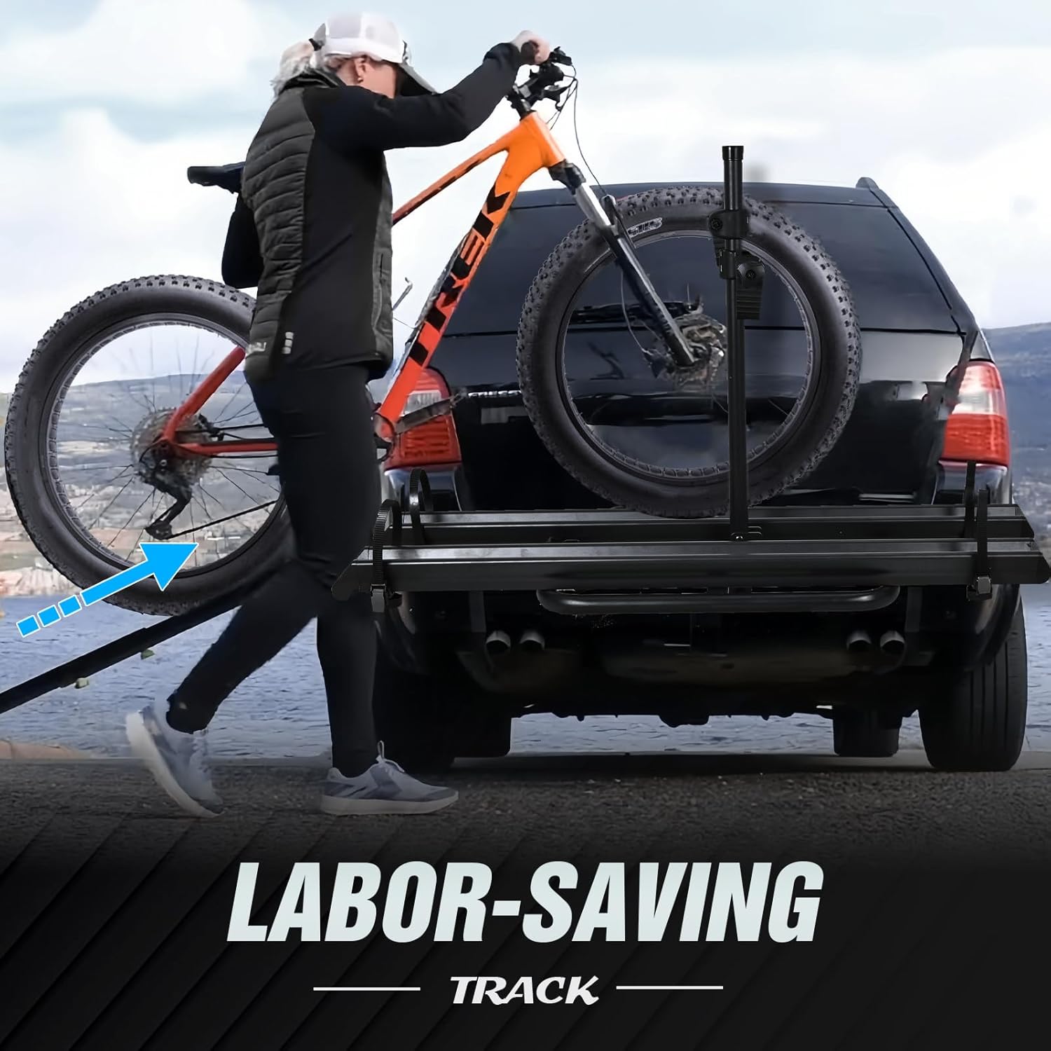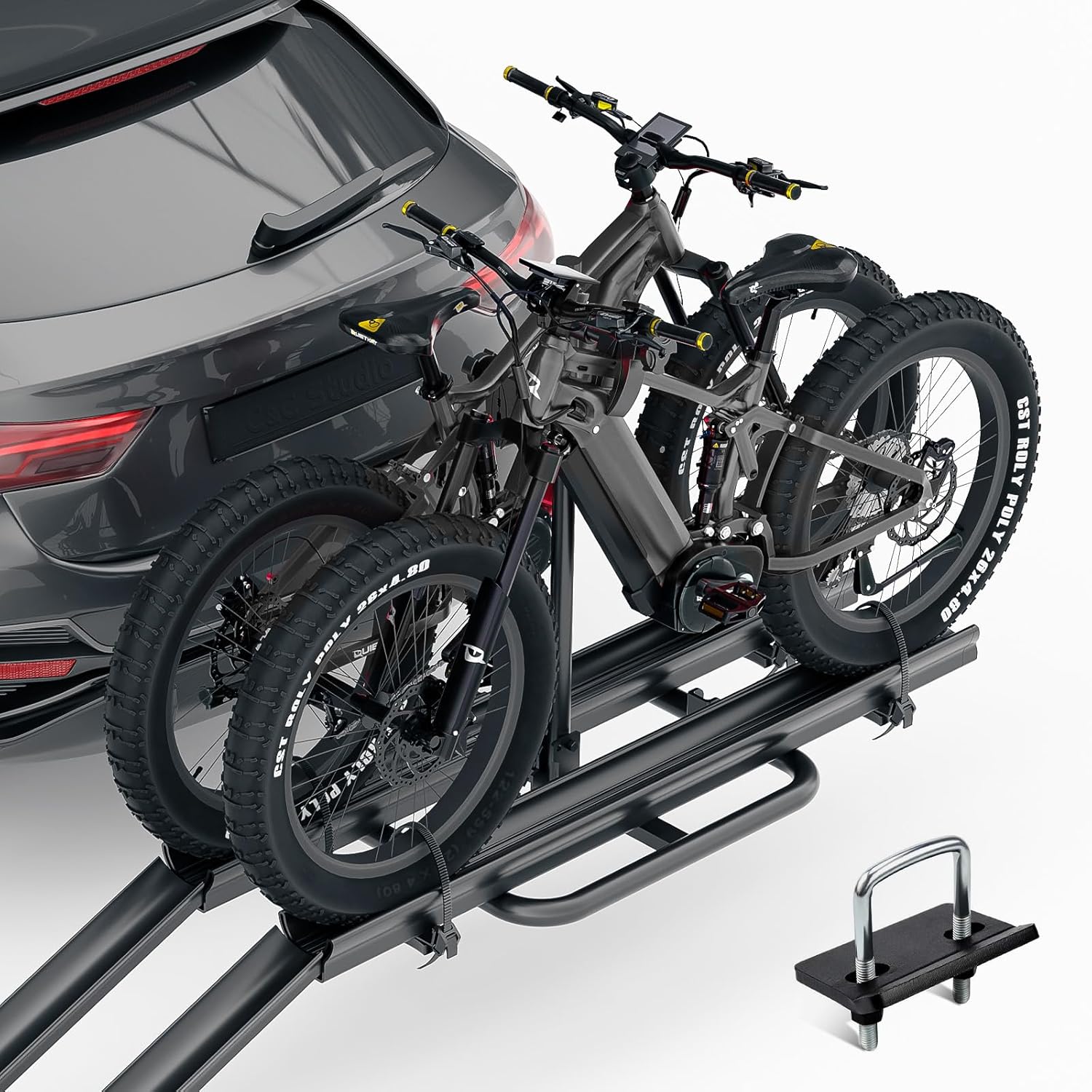 2 EBike Rack with Ramp, 2" Hitch Mounted Carrier Bike Racks Platform, 200 Lbs Max Loading for Standard, 5" Fat Tire and Electric Bicycles, Foldable E-Bike Rack for SUVs Cars Trucks Vans