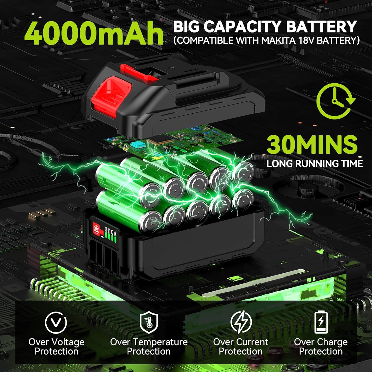 Uninterrupted Power, Endless Possibilities: Supstable pole saw is equipped with two replaceable 21 V, 4.0 Ah lithium batteries. Battery powered pole saw with safeguards against overheating, overcharging, and short circuits, enjoy up to 30 minutes of continuous cutting per battery for uninterrupted productivity.