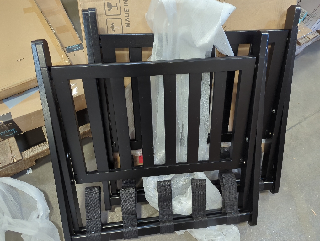 【Built with Strong Structure】The Folding luggage rack is made of eco-friendly bamboo wood and 5 fixed heavy-duty durable nylon straps, which are not liable to warp by long-term use. Good support makes it effective in preventing wobbling. The upper shelf can withstand 150 pounds and the lower shelf can withstand 50 pounds
