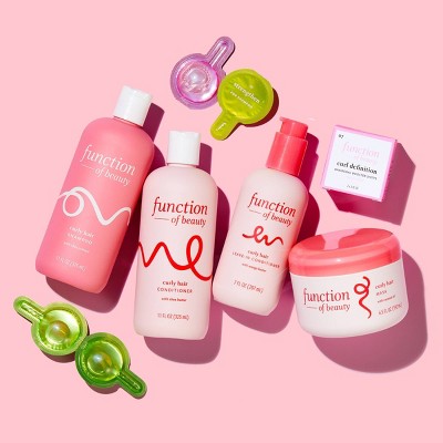 Function of Beauty’s custom mask for curly hair is formulated with coconut oil to give you smooth, hydrated, and healthier-looking curls. Indulge our most popular nude (p)each fragrance.Function of Beauty customizable hair care is suitable for sensitive skin and derm tested. We believe in clean and conscious care - that’s why our custom curly hair mask is 97% naturally-derived, silicone-free, sulfate-free, paraben-free, cruelty-free, and 100% vegan. HOW IT WORKS: Customize your own mask according to your unique #hairgoals by adding up to 3 Function of Beauty #HairGoal Booster Shots into your curly hair mask base.TO MIX IN #HAIRGOALS: snap open each #HairGoal Booster Shot, add one hair goal at a time, and stir with the spatula before first use. Pour up to 3 #HairGoals into your base formulation, and get ready for compliments!For best results, use with Function of Beauty Curly Hair Collection. Treat your hair like it's one of a kind (because it is) with Function of Beauty custom shampoo, conditioner, mask, leave-in conditioner, and #HairGoal Booster Shots. Each sold separately.