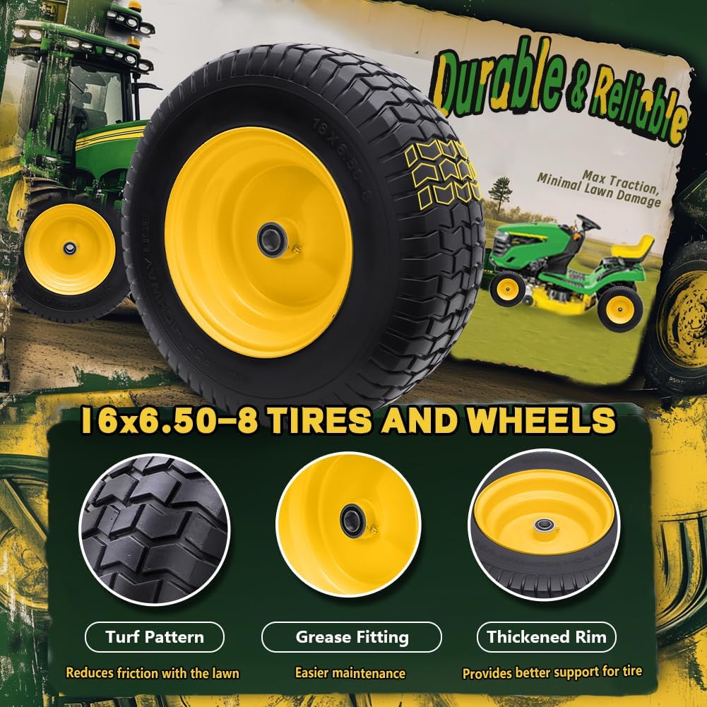 COMPATIBLE WITH MOST RIDING LAWN MOWERS: :The 16x6.50-8 solid mower tire is compatible with select yard tractors, lawn mower tires, farm equipment, and other wheeled lawn and garden equipment