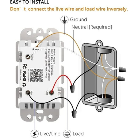Feature [Smart Switch with Remote Control]- Alexa light switch makes all your common household appliances smart, as long as your phone has network, you can remotely turn on/off your appliances from anywhere at any time. [Voice Control]- The AvatarControls smart switch compatible with Alexa and Google Home. Control your devices through Voice Control, hands-free experience. “Alexa, turn on the light!” SPECIAL REMINDER: OUR SWITCH NEED NEUTRAL WIRE. [Time Schedule]- Avatar Controls WiFi switch, use timer and schedule function to set your smart switch to automatically turn on/off while you are tired or outside. For example, start sleep schedule or routine to get baby sleep better. Save your time and electricity. [Easy Installation]- There are detailed installation steps in the manual, you can follow the manual step by step to install this smart light switch. SPECIAL REMINDER: Smart Switch needs neutral wire. [Easy Control by AvatarControls APP]- Simply search Avatar Controls in App Store or Google Play and download it. Scan the QR code to download if your search engine or social software has built-in QR code scanner. Keep pressing the switch button till blink lighting indicator, connect it on your App. [Convenient and Reliable]- Related certificated received already. Customer-Centric, We always focus on user experience. Specification: Operation Mode: ON-OFF Current Rating: 10 Amps Operating Voltage: 110 Volts Color: white Connector Type: Plug In Switch Style: Light Switch Terminal: Solder Material: Plastic Item Dimensions LxWxH: 2.76x 1.73 x 4.53 inches Mounting Type: Wall Mount Package Included: 2 x Smart Switch 2 x Remote Control