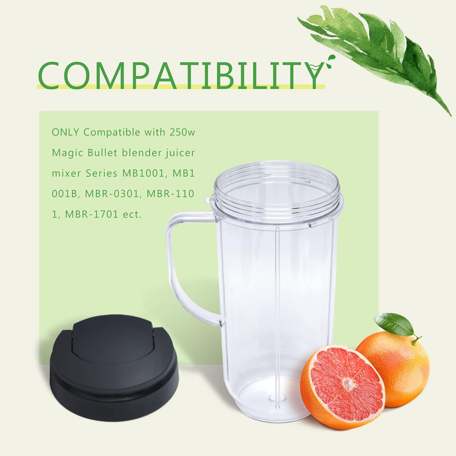 ????【PAY ATTENTION】------ Our Mug with Handle magic bullet cups ONLY compatible with 250-Watt blenders ( MBR-1701 /MBR-1702 /MBR-1101/ MB-BX1770-02/ MB1001/ MBR-0301/MBR-0701P/MB1001B). NOTE check: if your blender is compatible or not before purchase!