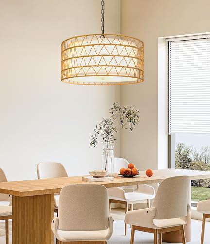 Easy Installation: The dining room light fixture comes with detailed instructions and fittings, simply follow the installation steps in the instructions to assemble it and then fit the bulb to get the perfect rattan pendant light. Compatible with E26 bulbs and dimmable bulbs (bulbs not included) up to 60w. Please connect the circuit with the assistance of a professional electrician for more safety.
