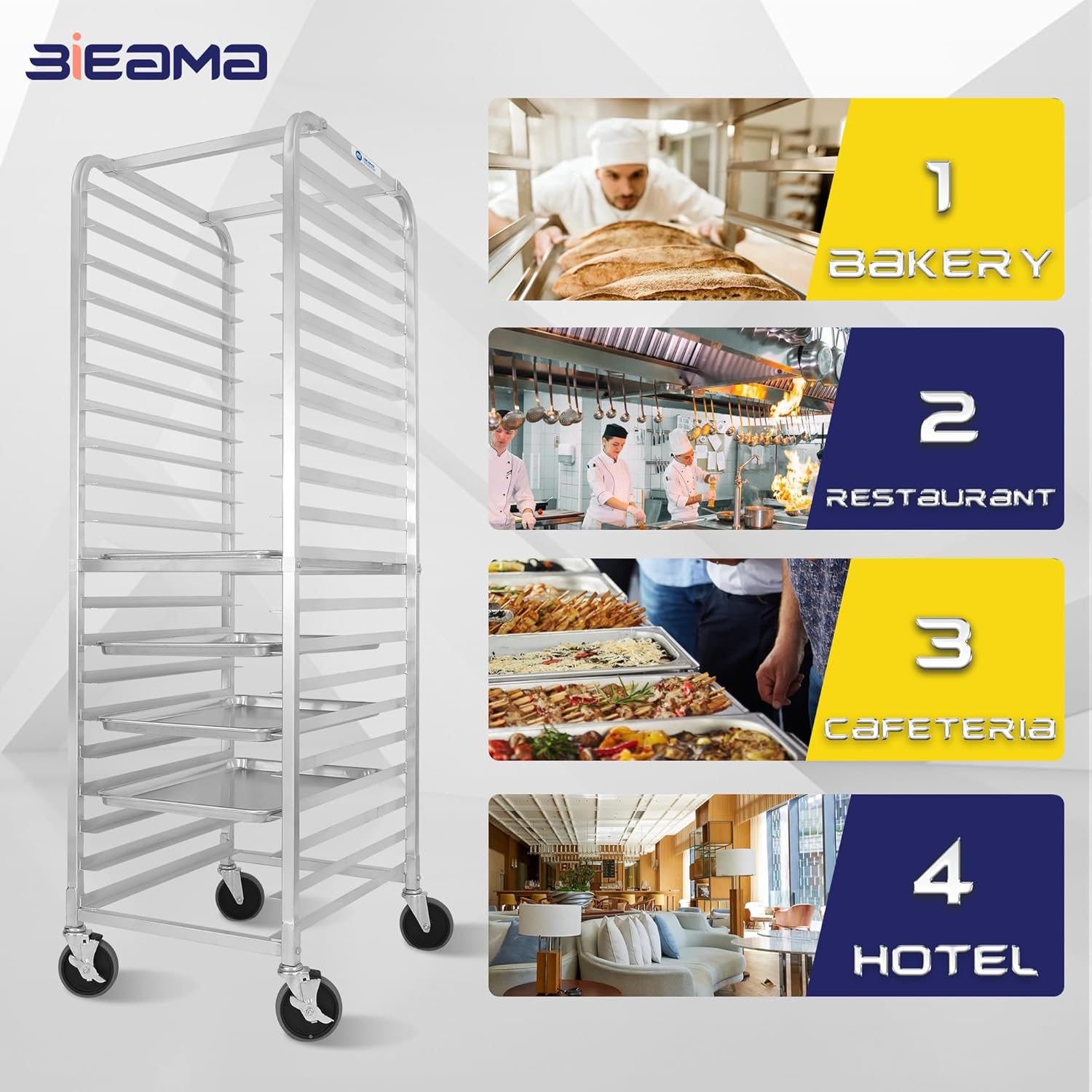 20-Tier Sheet Pan Rack, NSF Bun Pan Rack, Aluminum Bakery Rack, Home Commercial Kitchen Bakery Cooling, 4 Wheels