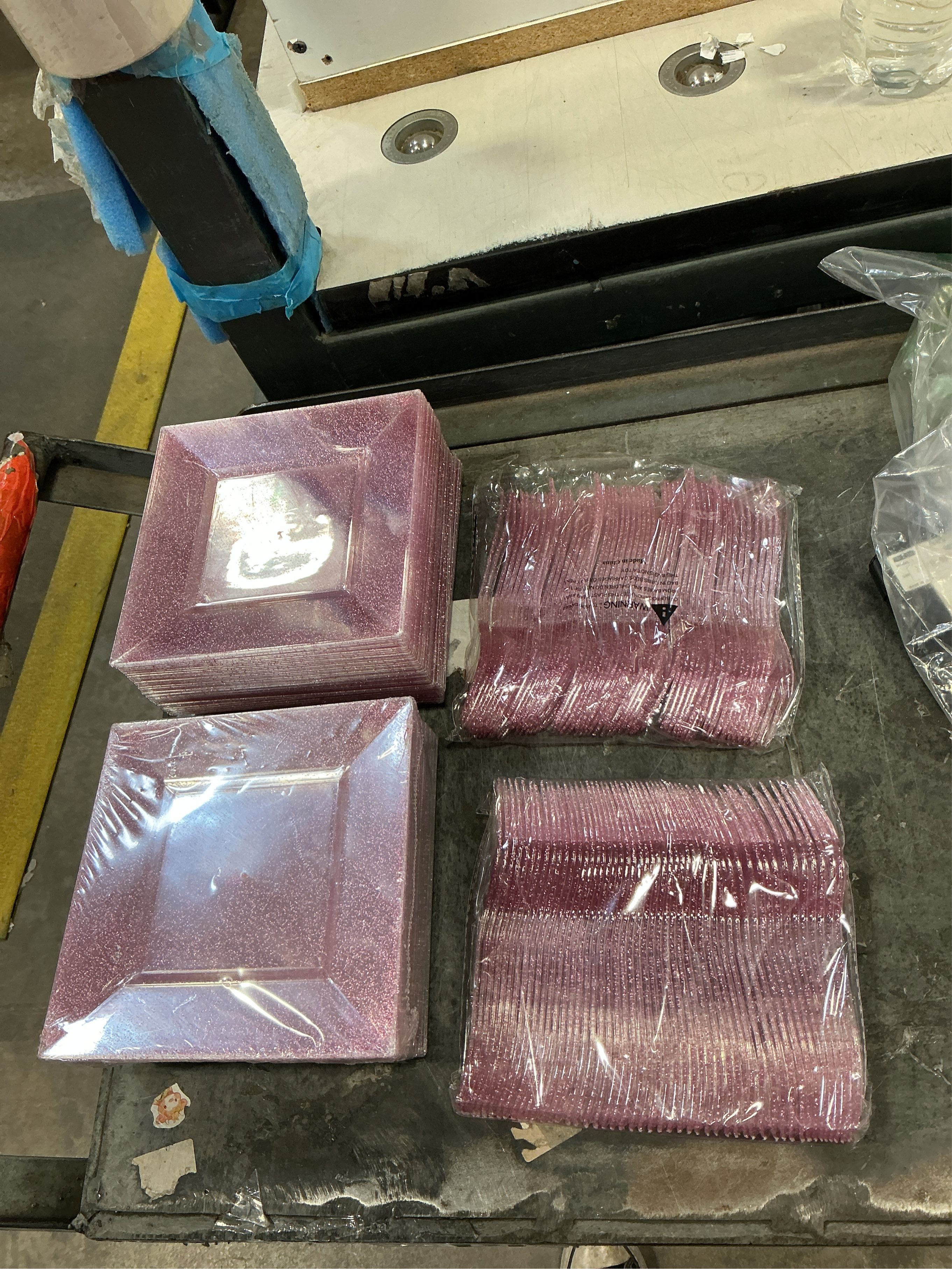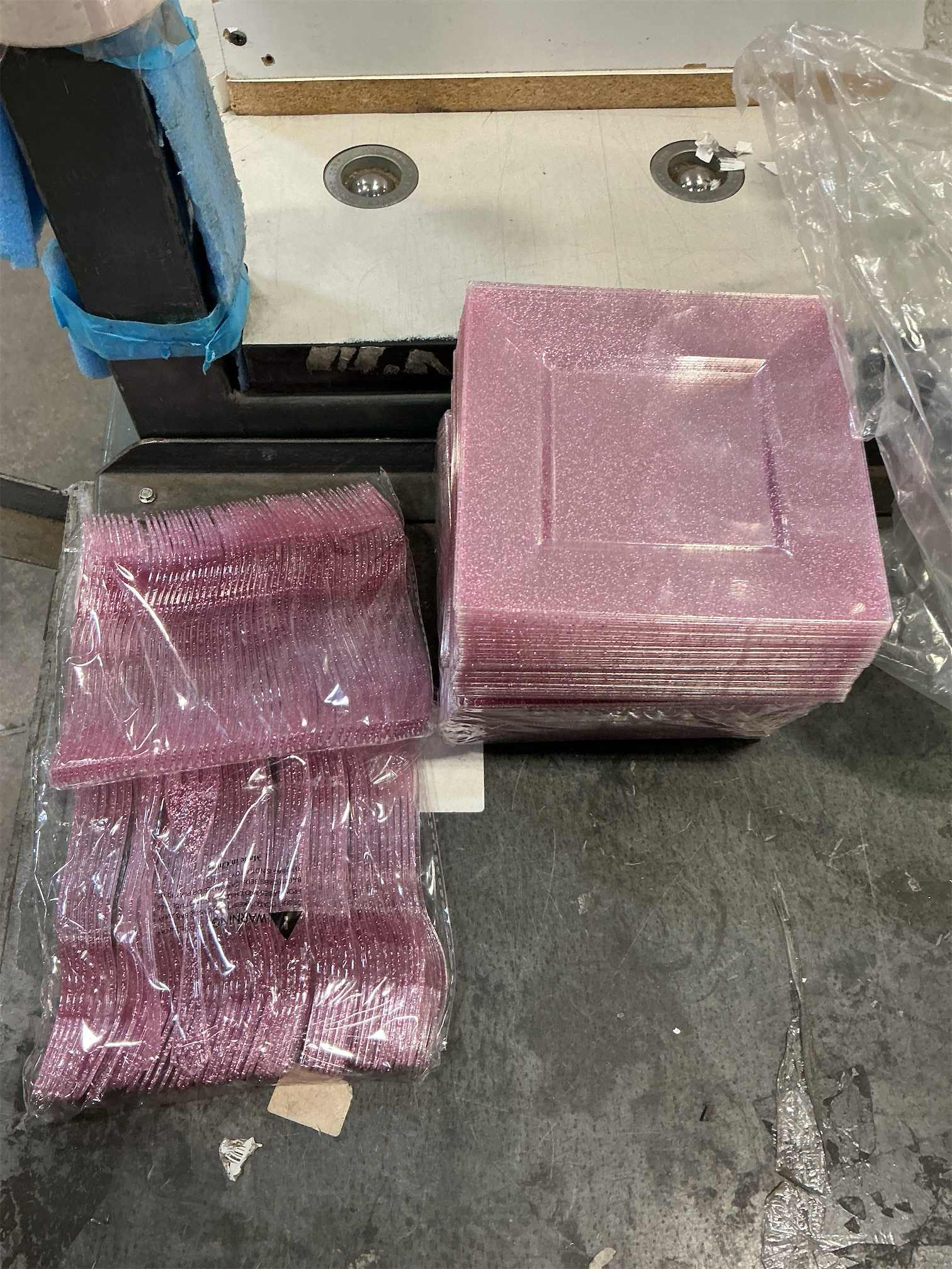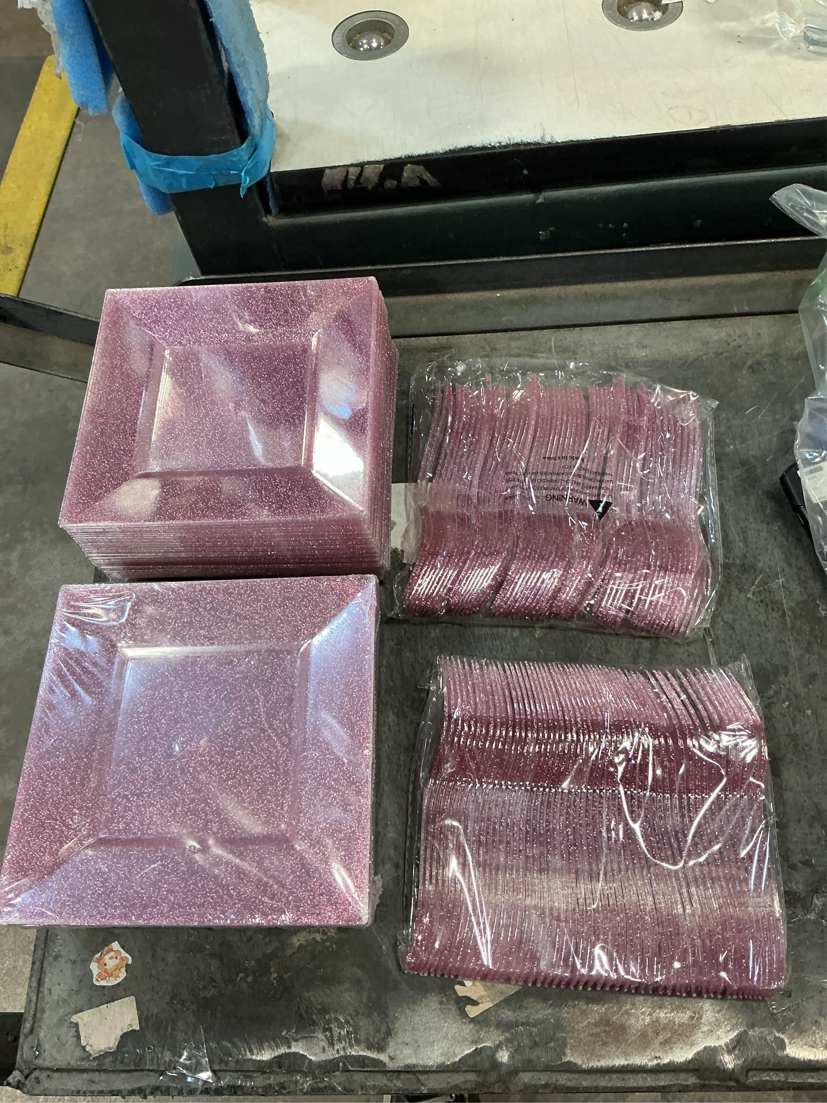 200 Pcs Pink Dessert Plates Including 100Pcs Appetizer plates 6'',100Pcs Plastic Forks 5.7'',Rose Glitter Plastic Square Plate for Wedding,Pink Salad plates and Cake forks for Birthday Party