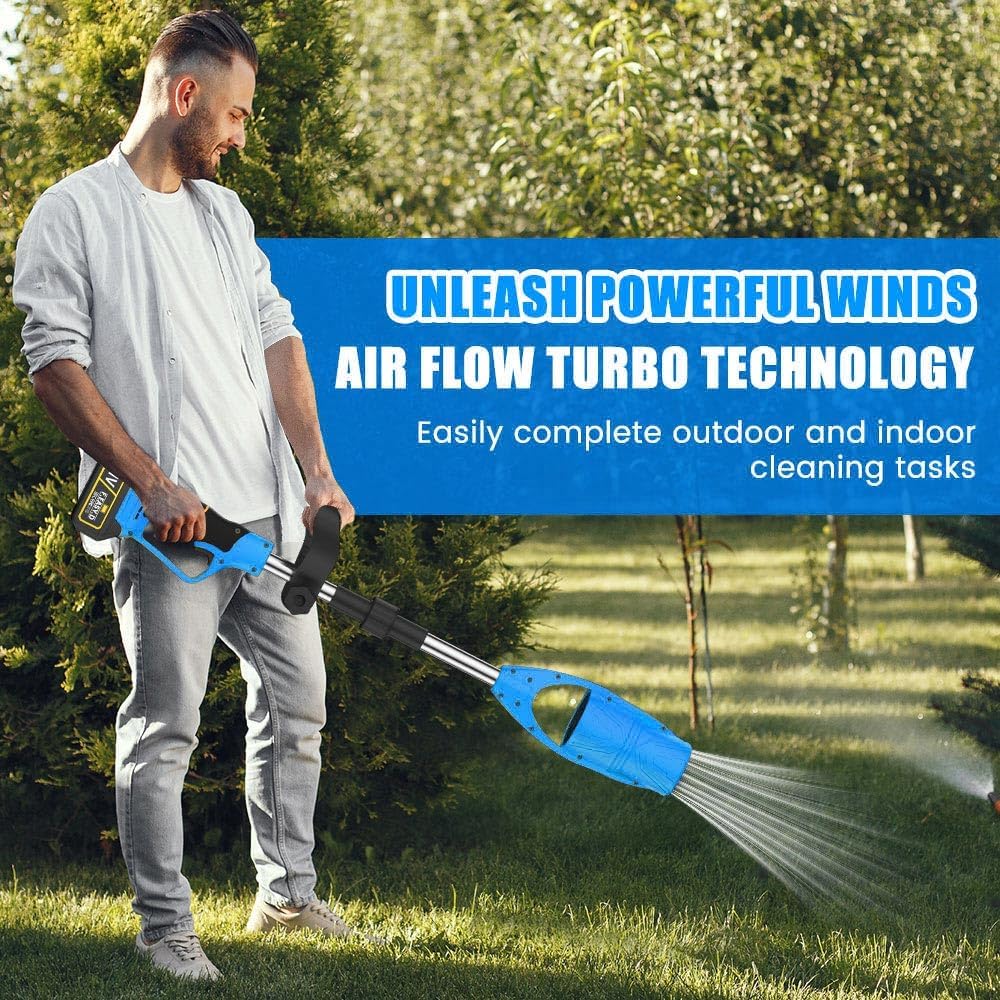 Infinite Variable Speed: Unlike traditional blowers with limited blowing modes, this 2025 upgraded leaf blower allows infinite speed adjustment. Customize power for leaves, dust or snow without switching to unsuitable modes. Dual-Handle Design: Front and rear dual ergonomic handles provide superior stability and balance. No more single-arm strain, control the blower comfortably with both hands, even during 1hr cleaning sessions. Extra Battery: Comes with 2 large capacity 21V lithium batteries delivering 30 mins each on low speed (60 mins total) or 20mins combined on high speed. Swap batteries seamlessly for uninterrupted work. Ultra-Lightweight: Cordless leaf blower boasts a lightweight design Weighing only about 3.1 lbs and featuring an ergonomic body, When operating, the leaf blower naturally tilts towards the blowing direction, it reduces user fatigue by 30-50%. Smart Cleaning Partner: Ideal for autumn leaves, spring pollen, post-renovation debris, light snow (2inch depth) and indoor dusting. Unlike gasoline blowers it's rechargeable and more portable as a lawn care equipment, yard blower, grass blower.