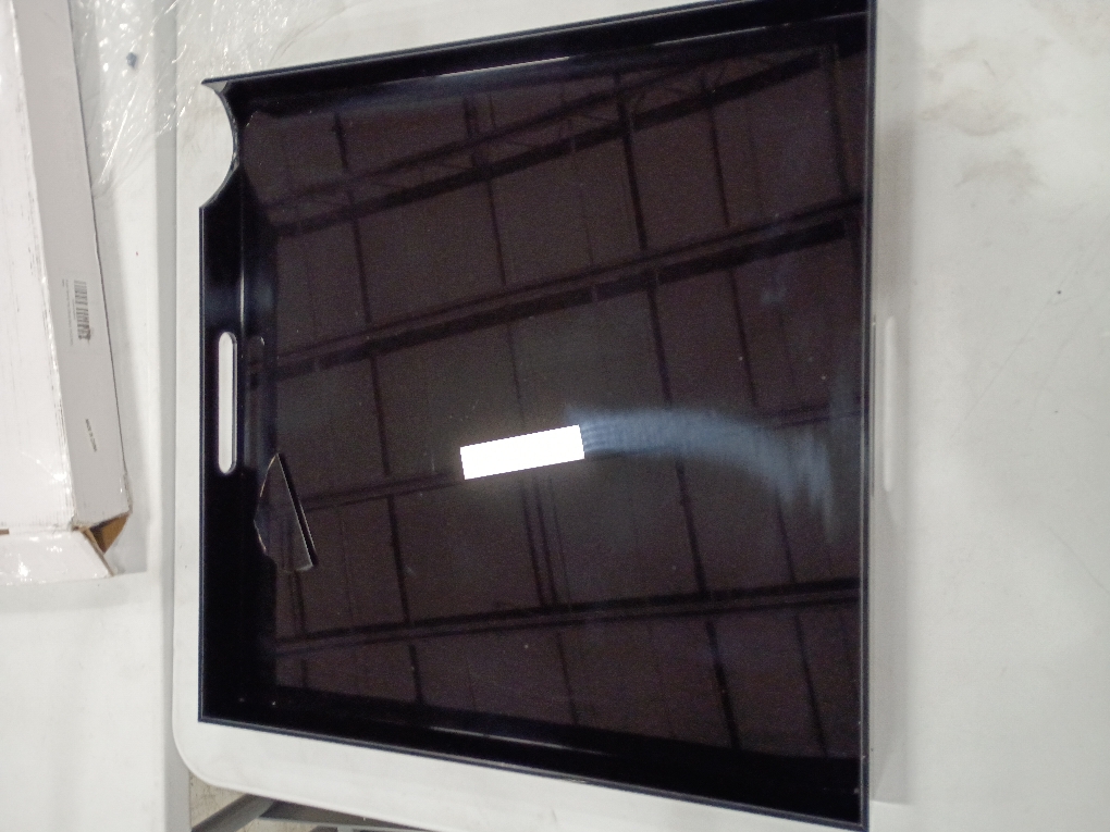 20×20 inches Oversized Black Acrylic Ottoman Tray Extra Large Decorative Tray Spill-Proof Serving Trays with Handles King-Size Safe Edge Organizer for Coffee Table Countertop Breakfast (the corner is broken see the picture)