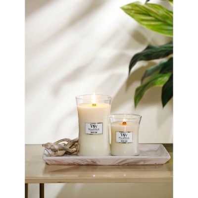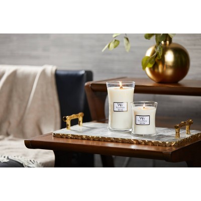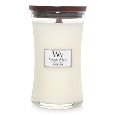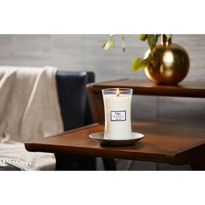 21.5oz Large Hourglass Jar Candle White Teak - WoodWick: Soy & Paraffin Blend, Crackling Wick, 120hr Burn Time