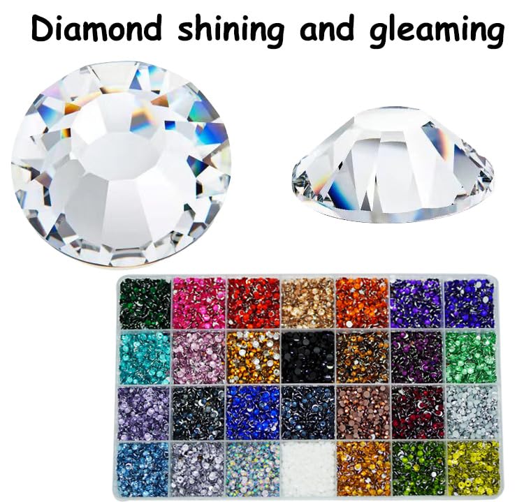 NON-TOXIC AND AB COATING SPARKLE: Those resin rhinestones are made of environmentally friendly resin material, No hard to skin. The AB coating on the surface and 14 facet fine cutting, so those resin diamonds have much more long-lasting sparkle performance. And it is separated by 28 small grids to avoid mixing rhinestones, convenient for storage and carry.