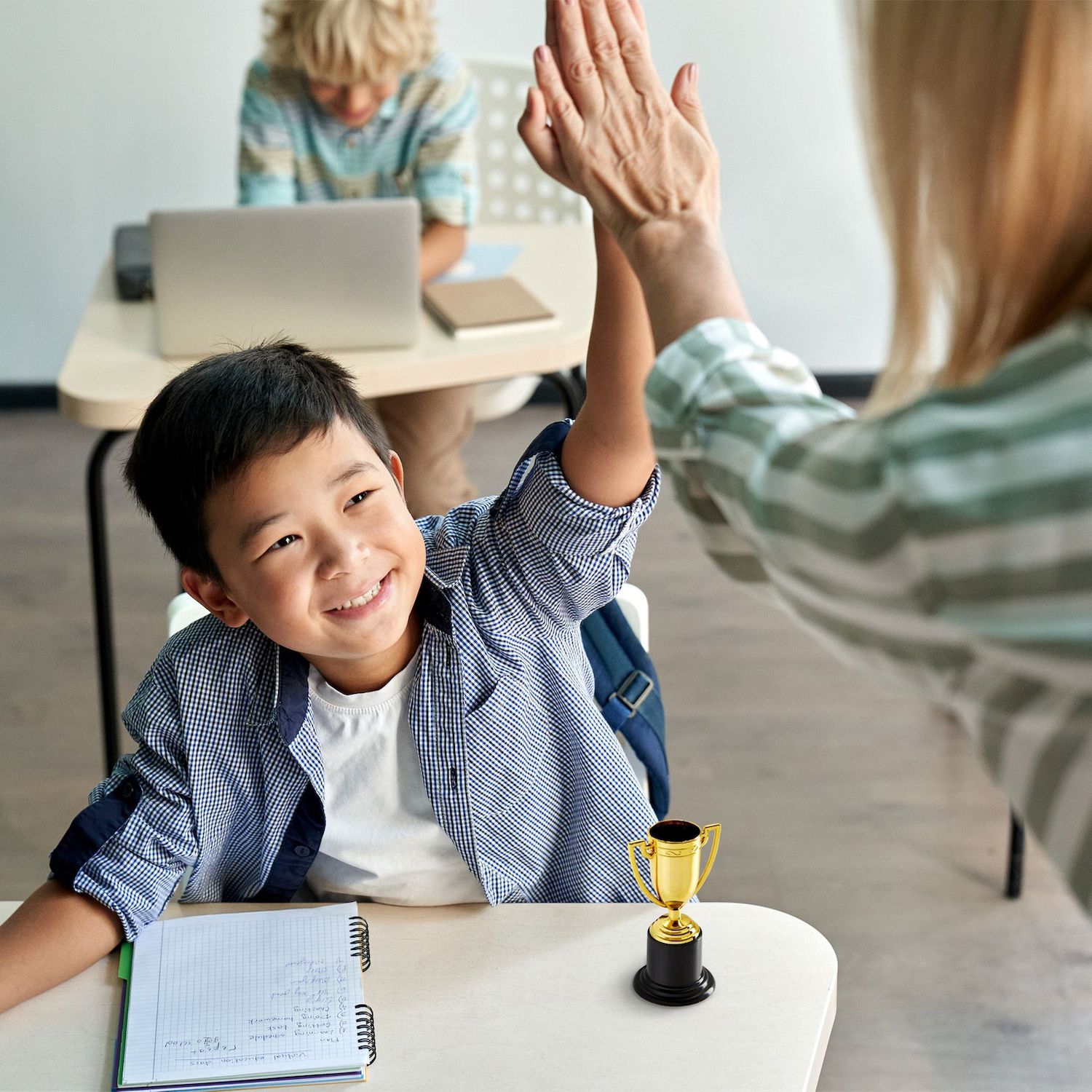 Our mini trophies 24 pack are sure to make anyone feel like a winner! These tiny trophies are perfect for sports-themed birthday parties, competitions, cooking tournaments or to use as a rewards system in your classroom. Featuring decorative embossments and handles on two sides, these trophies are perfect for handing out participation awards to your team and classrooms. Each small trophy measures 1.9 x 4.0 x 1.9 inches that fits in the palm of your hand!