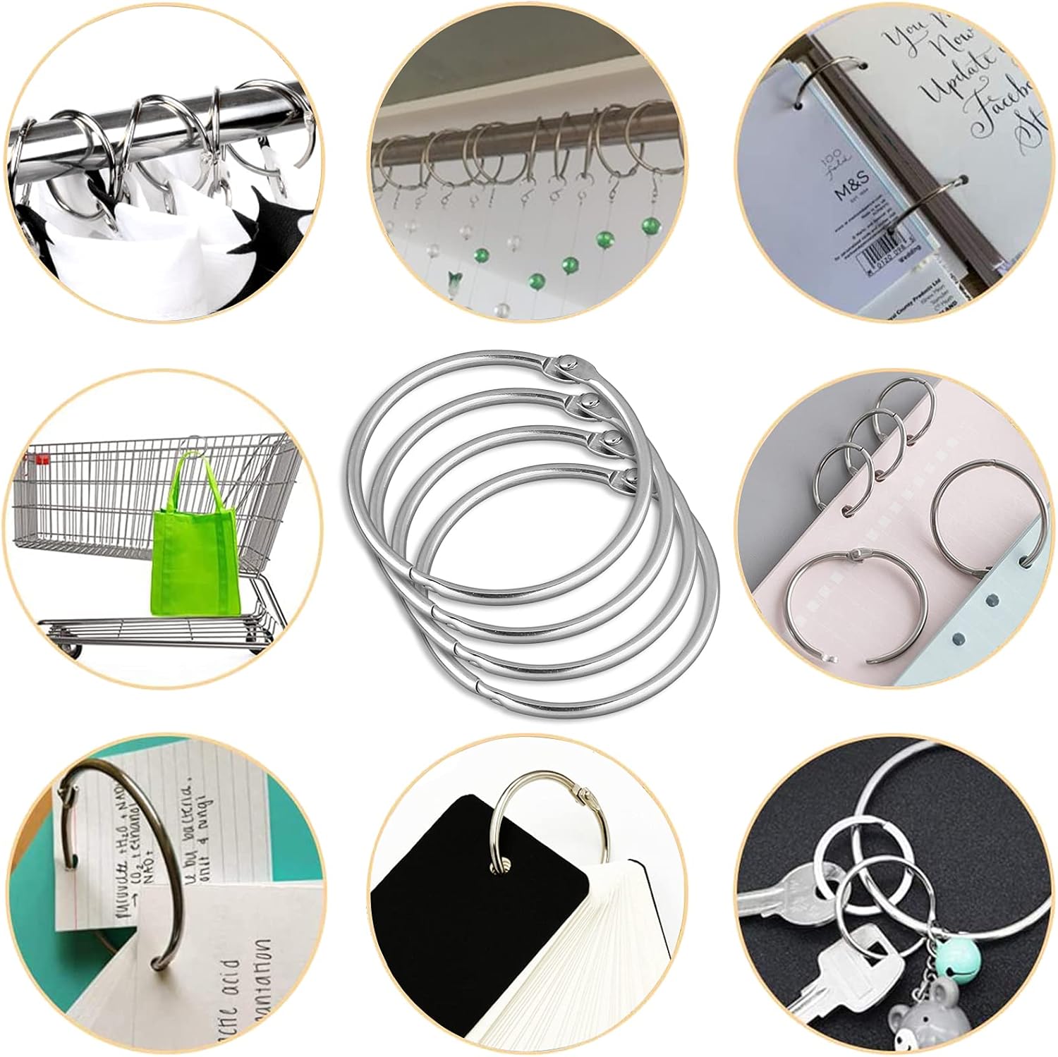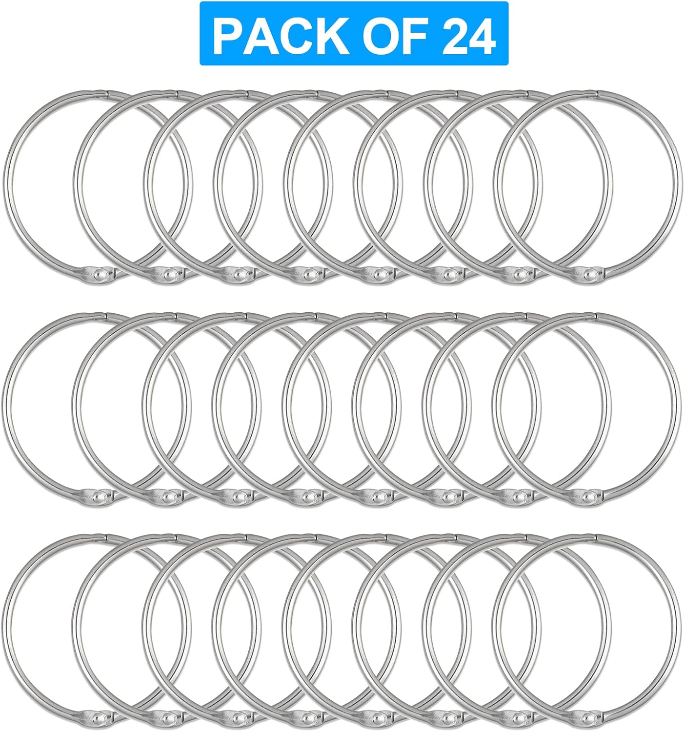 A set of 24 shower curtain rings (can be used for two sets of shower curtains). Its inner diameter is about 2 inch, fit most standard shower curtain rods. In addition to shower rings for curtains, the rings can be used as binder rings, loose leaf rings, memo filing rings, organizing tool, key rings, scrapbook rings, etc.
