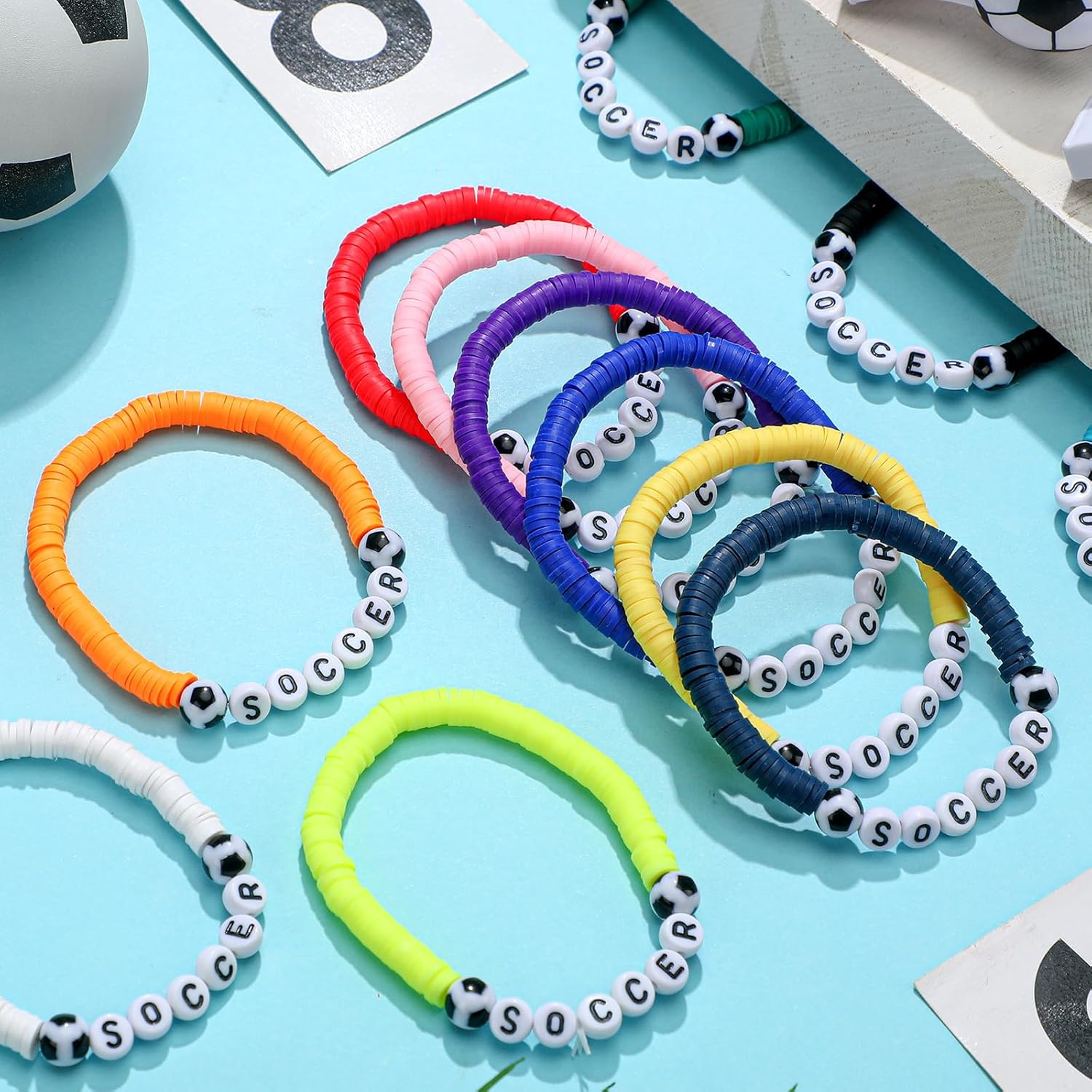 24 Pcs Soccer Bracelets Stackable Clay Beaded Bracelets Soccer Party Favors Beaded Ball Adjustable Clay Bracelet Jewelry Sports Gifts Supplies for Teen Adults