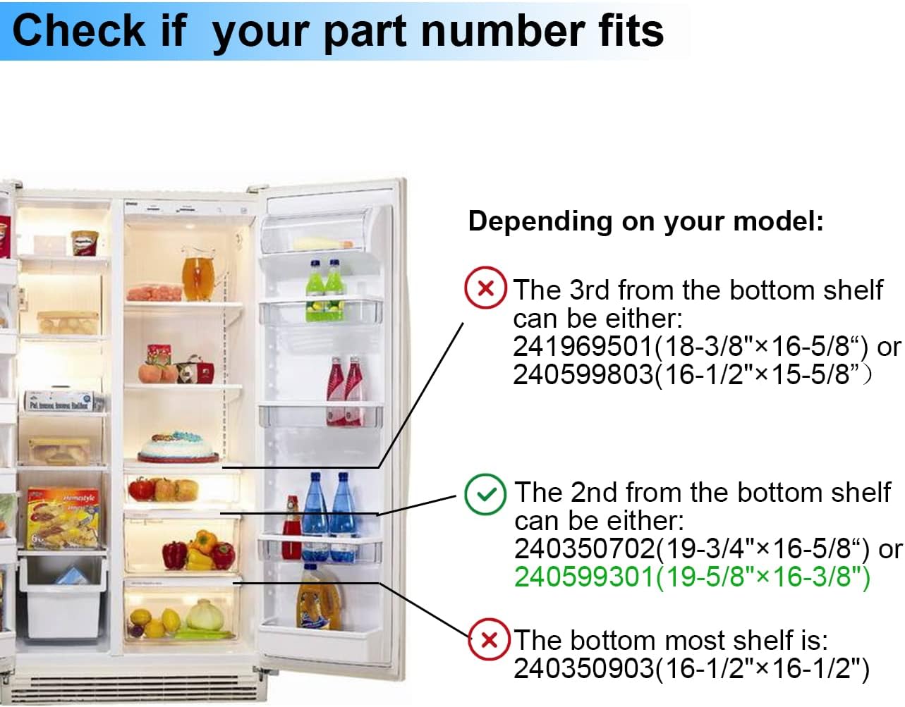 240599301 crisper pan cover replace part numbers: 240599301, AP3763926, 1037664, AH899475, EA899475, PS899475.