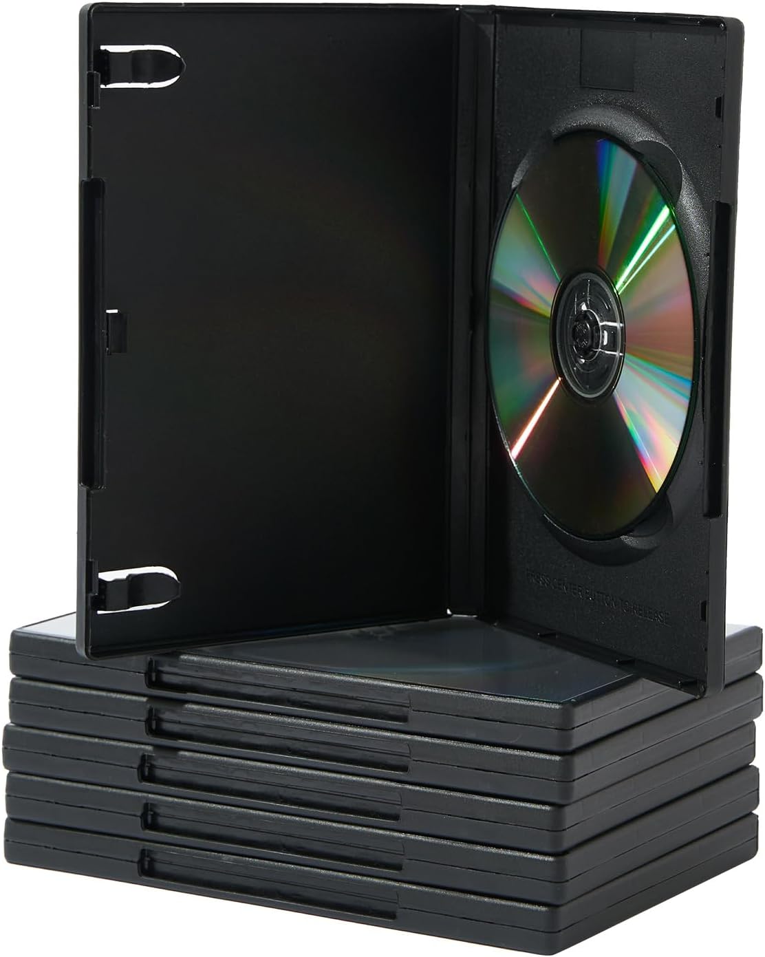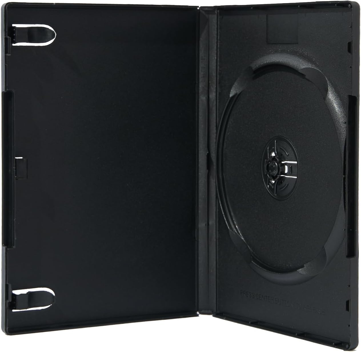 25 Pack Maxtek Standard 14mm Black Signle Disc DVD Cases with Outter Clear Sleeve