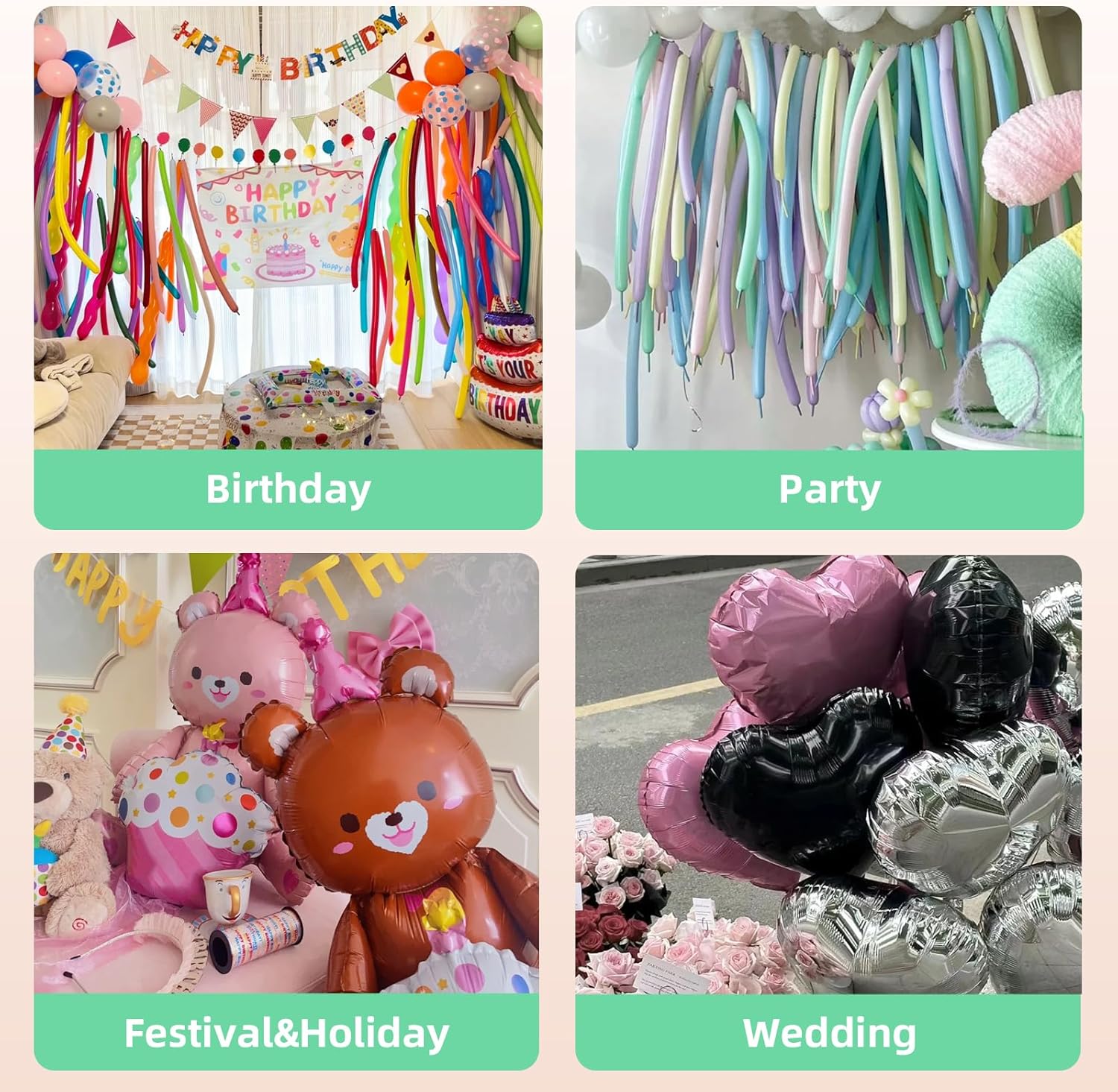 Suitable for 260 and aluminum foil balloons: Powerful motor and stable design, perfect for inflating 260 balloons and animal balloons, aluminum foil balloons, Not suitable for inflating other balloons, such as 12-inch latex balloons