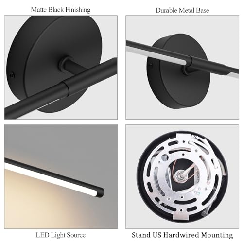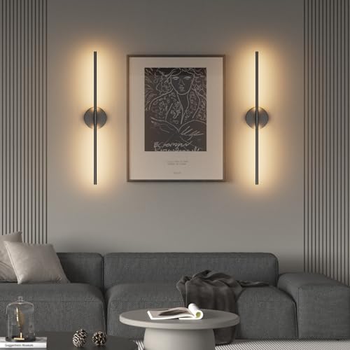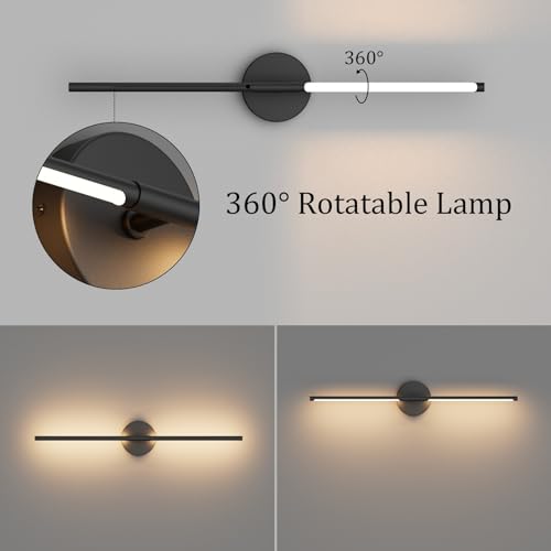 3. 28In Black Wall Sconce Set of Two Hardwired 3000K LED Modern Wall Light Fixture 360° Rotatable for Living Room Hallway Bedroom(2 Pack)
