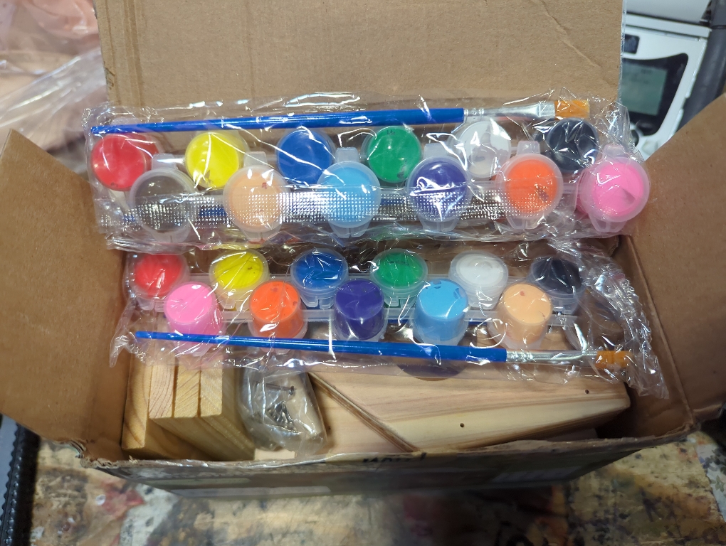 Build and paint 2 classic 6" Tall bird houses using the parts In this kit!