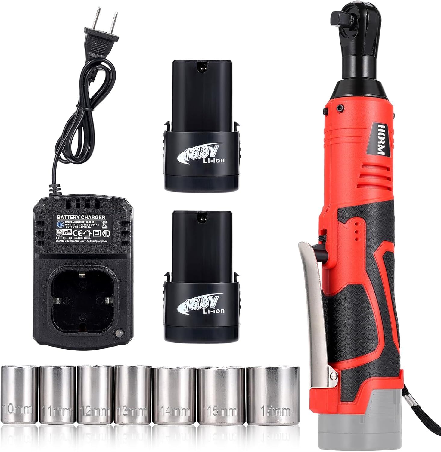 Set Value: Electric ratchet set includes one cordless ratchet;Two high-quality 16.8V 2.0Ah lithium-ion battery packs;one 110V seat charger,supporting a wide voltage range of 110V-220V, convenient for charging in different scenarios to the cordless ratchet wrench 3/8;7 different sizes of power ratchet sockets,suitable for loosening nuts and bolts of different sizes,bidding farewell to bulky and slow manual wrench