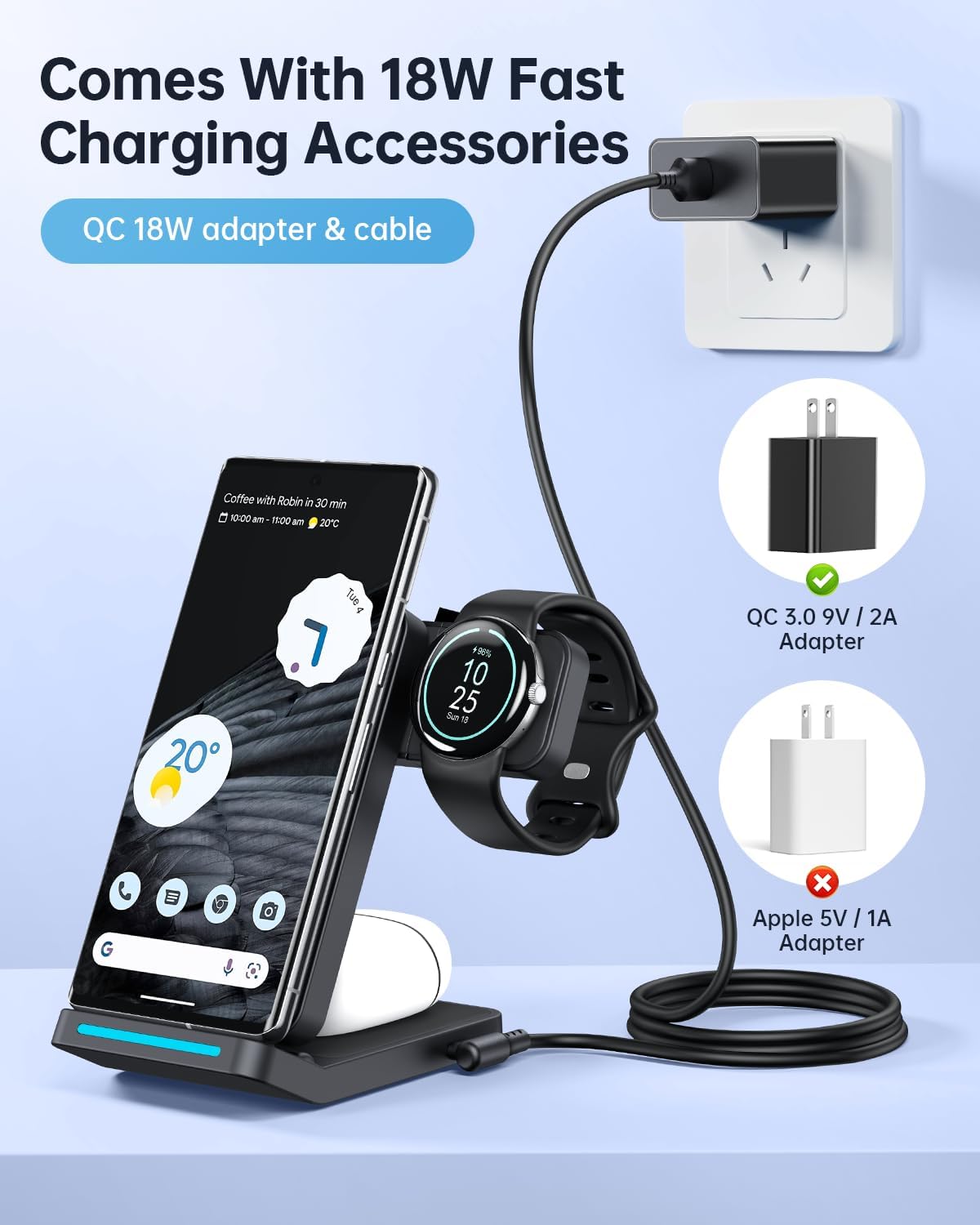 ???????????????? ???????????? ???????????????????? ???????????????????? ????: This 3 in 1 wireless charging station only for Google Pixel Watch 1(2022). Not for Google Pixel watch 2(Released in 2023) and Google Pixel Watch 3(Released in 2024)