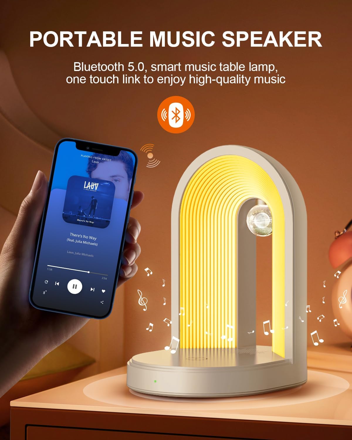 【3 in 1 Table Lamp】- Wireless Charging Station Night Light Bluetooth Speaker, Gemmac bedside lamps wireless charger is an ideal decoration for your bedroom, office, or living room. Versatile and easy to use, put down your phone and charge it instantly, and the soft lighting and music will give you the ultimate feeling of relaxation!